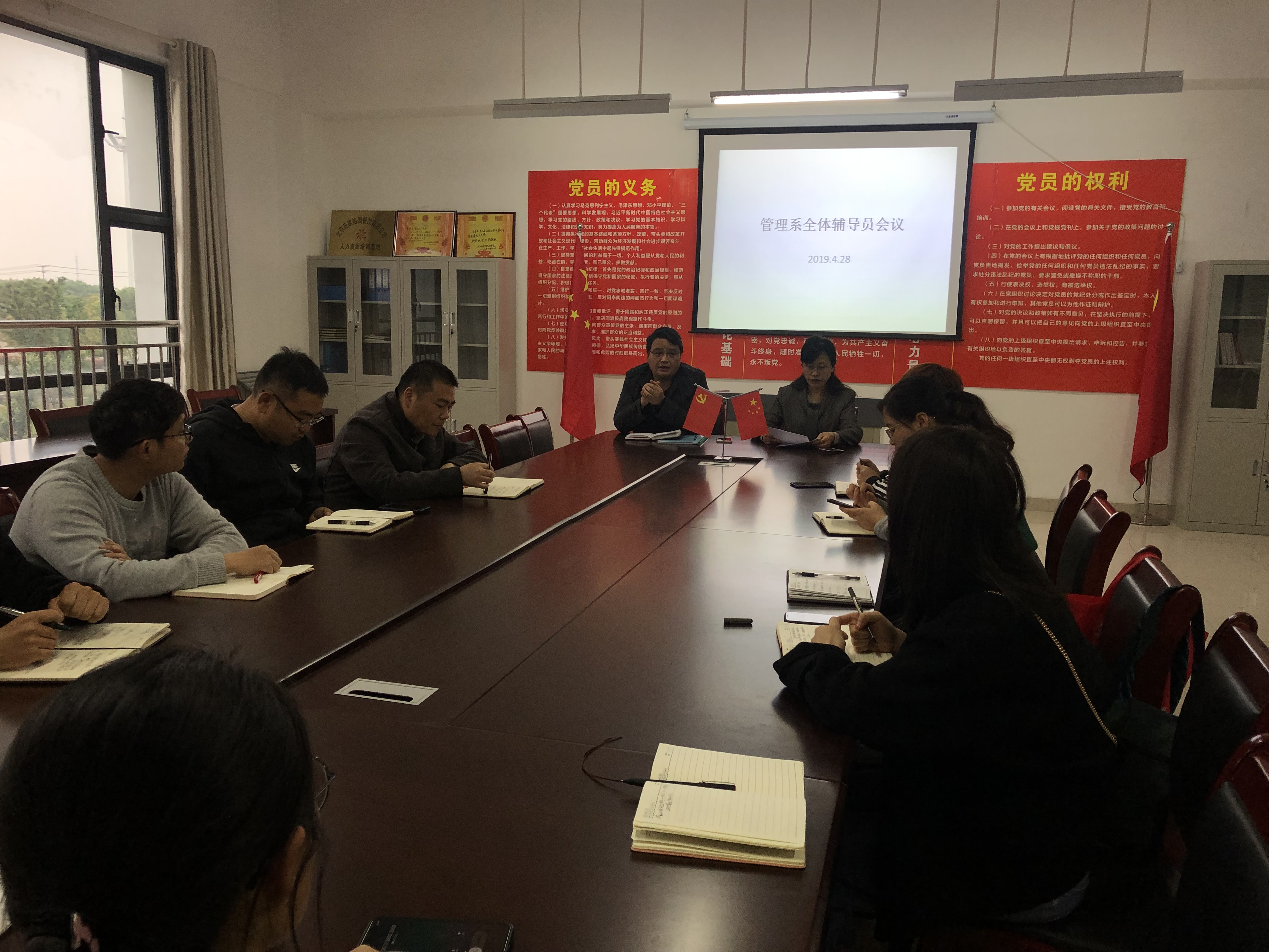 4月28日下午,管理系在系会议室召开全体辅导员会议,管理系全体辅导员参加会议,系党总支副书记陈兴旺主持会议。
