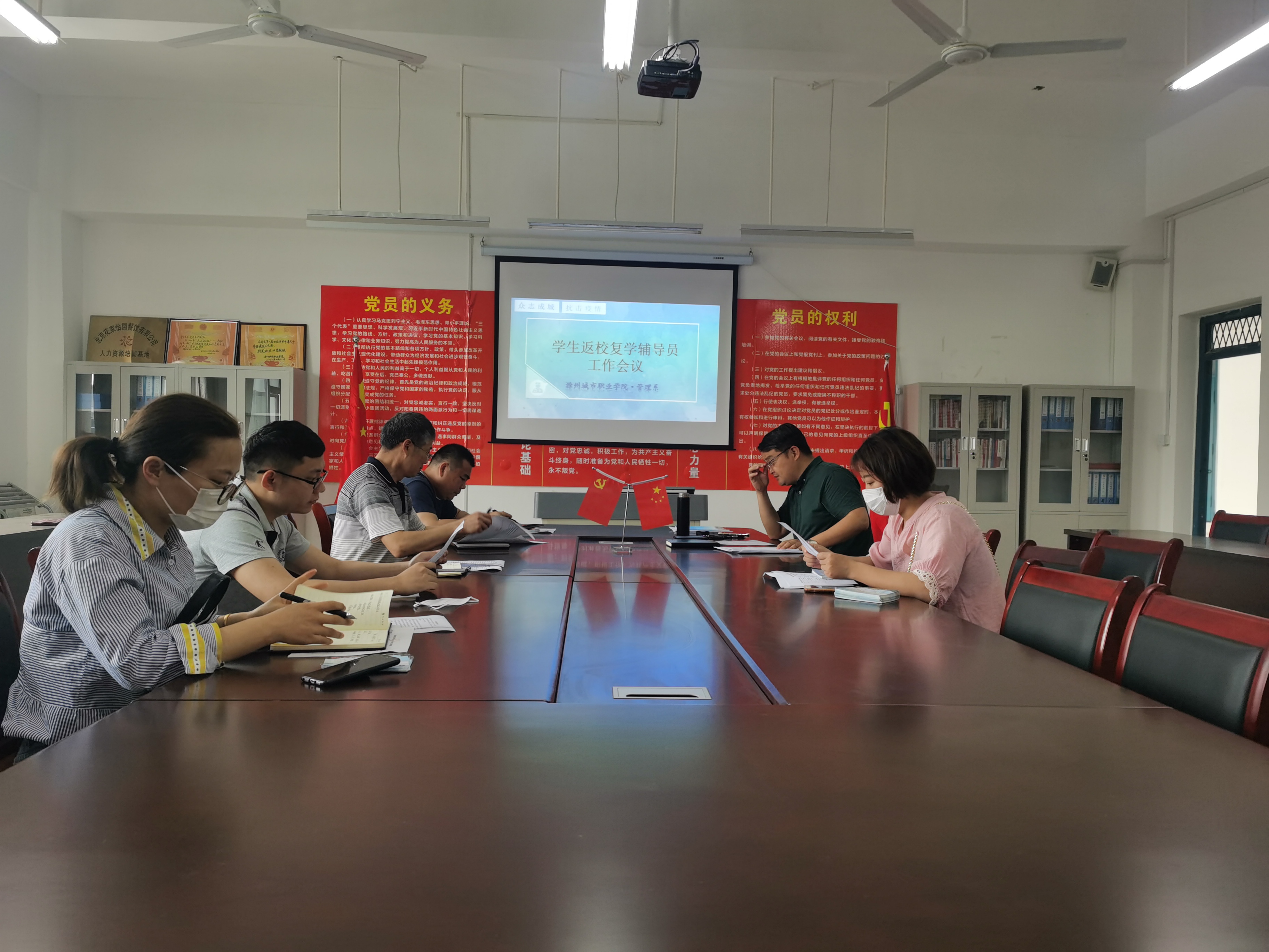 为切实做好新冠肺炎疫情防控工作,保障学生复学返校工作平稳进行,5月20日下午,管理系于系会议室召开学生返校复学辅导员工作会议,会议由陈兴旺主持,16级初专、17级初专、18级全体辅导员参加会议。