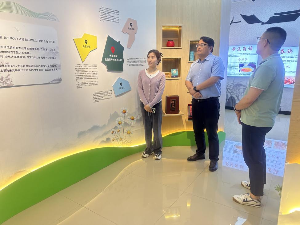 在滁州市电子商务商会秘书长陈栋的陪同和介绍下,陈兴旺一行参观了南谯区电子商务公共服务中心的农产品展厅,了解了滁州柠果网络科技有限公司的运作模式和在农村电商方面所做出的成绩。