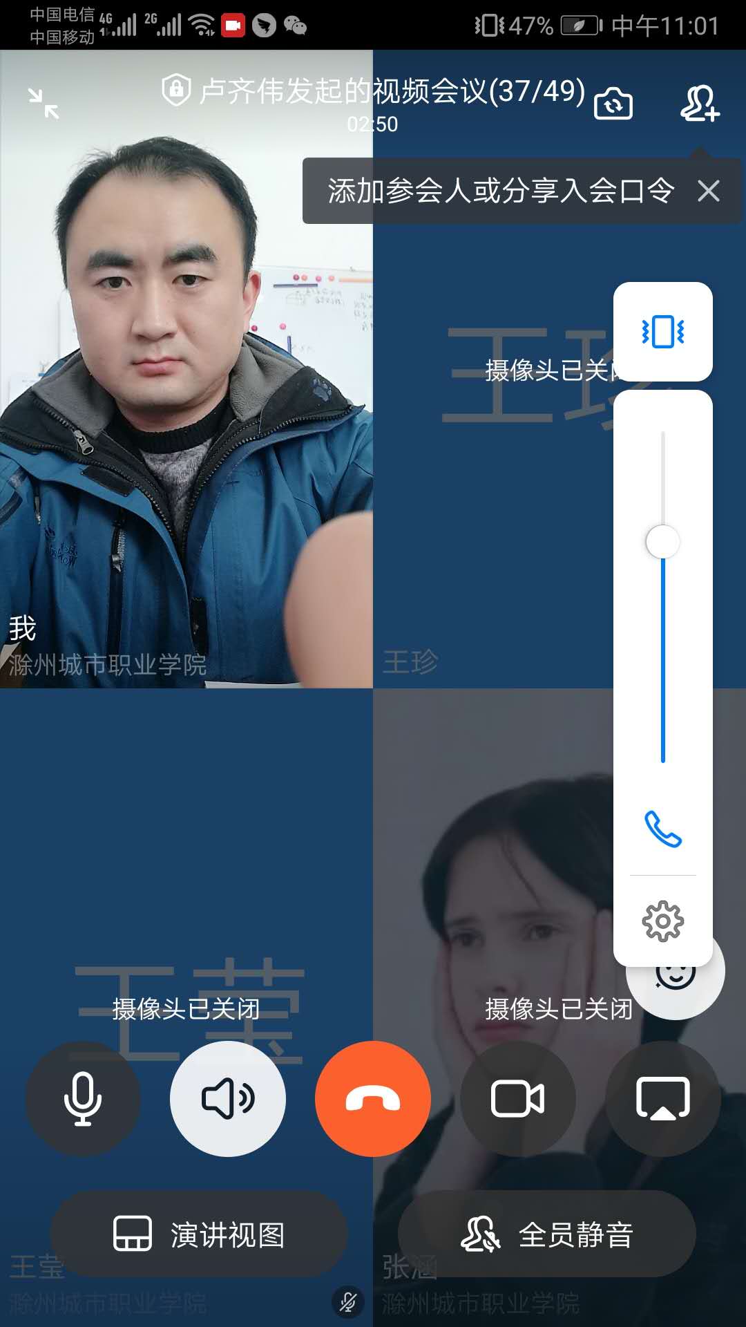 通过网络主题班会,了解学生思想动态,拉近了师生距离,形成良好的师生互动,一起讲述了疫情中发生的感人事迹,学习了抗疫英雄无私奉献、奋勇拼搏的“逆行”精神,同学们还结合自身情况以及对疫情的了解争先发言,纷纷表示当代大学生要做防控疫情的坚定拥护者、防控工作的坚定落实者,要有爱国之心、要肩负时代使命,要承担社会责任,与国家民族同呼吸、共命运,同时保持好心态、重防护、勤消毒、能不出门就不出门,为夺取抗击疫情斗争的胜利作出自己应有的贡献。此次网络主题班会也给居家的同学们送去了一缕暖阳、一份精神食粮,相信这场特殊时期的特殊班会一定能够让我们更加团结,共同打赢这场防疫阻击战,迎接美好的未来。(文:葛子正)