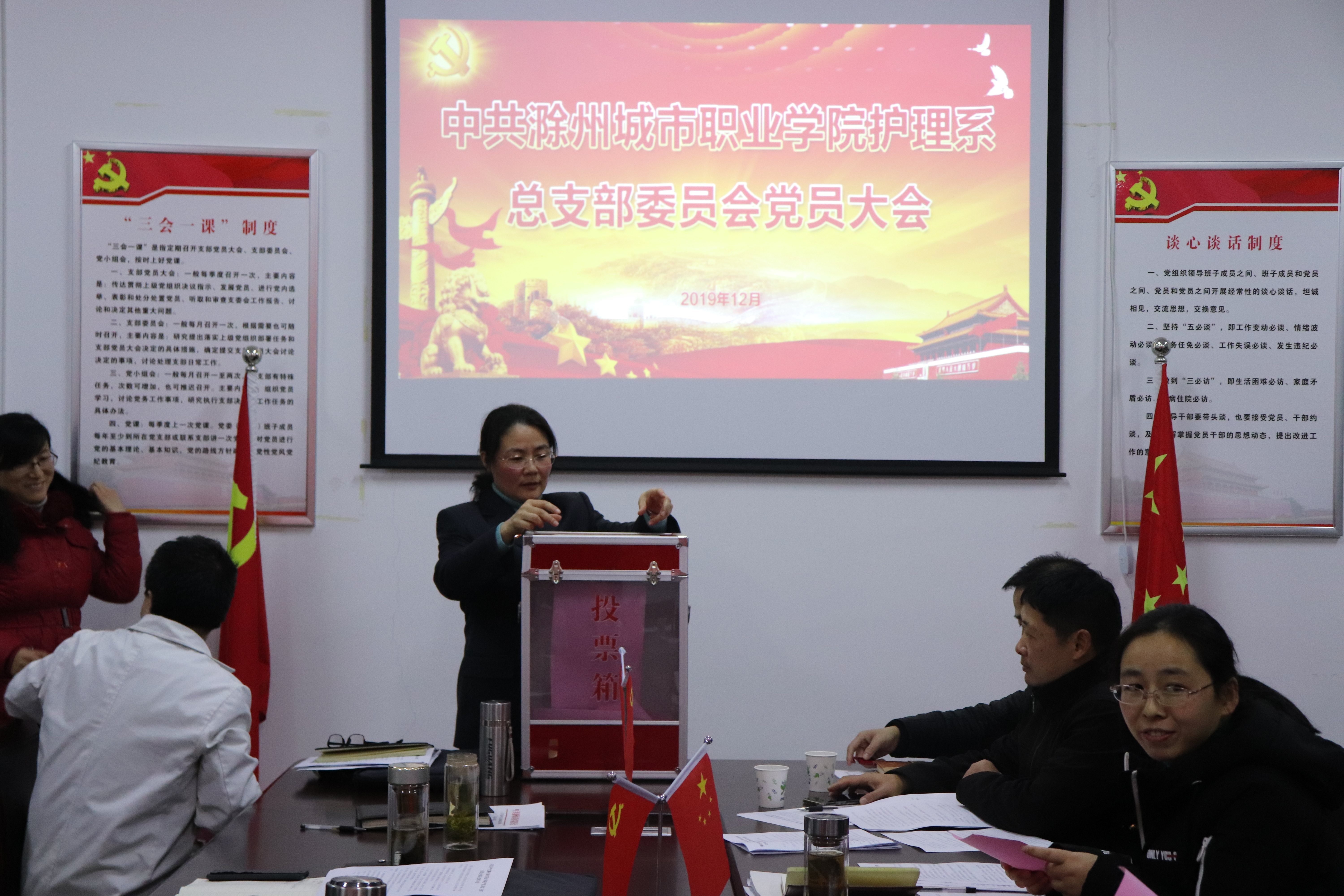在选举阶段,大会以举手表决的方式,通过了《选举办法》、监计票人建议名单、候选人名单。最终采取无记名投票方式差额选举出蔡季秋、章正福、朱启来、左晶晶、卢齐伟、李勋华、秦海娇七位同志组成护理系党总支新一届委员会。