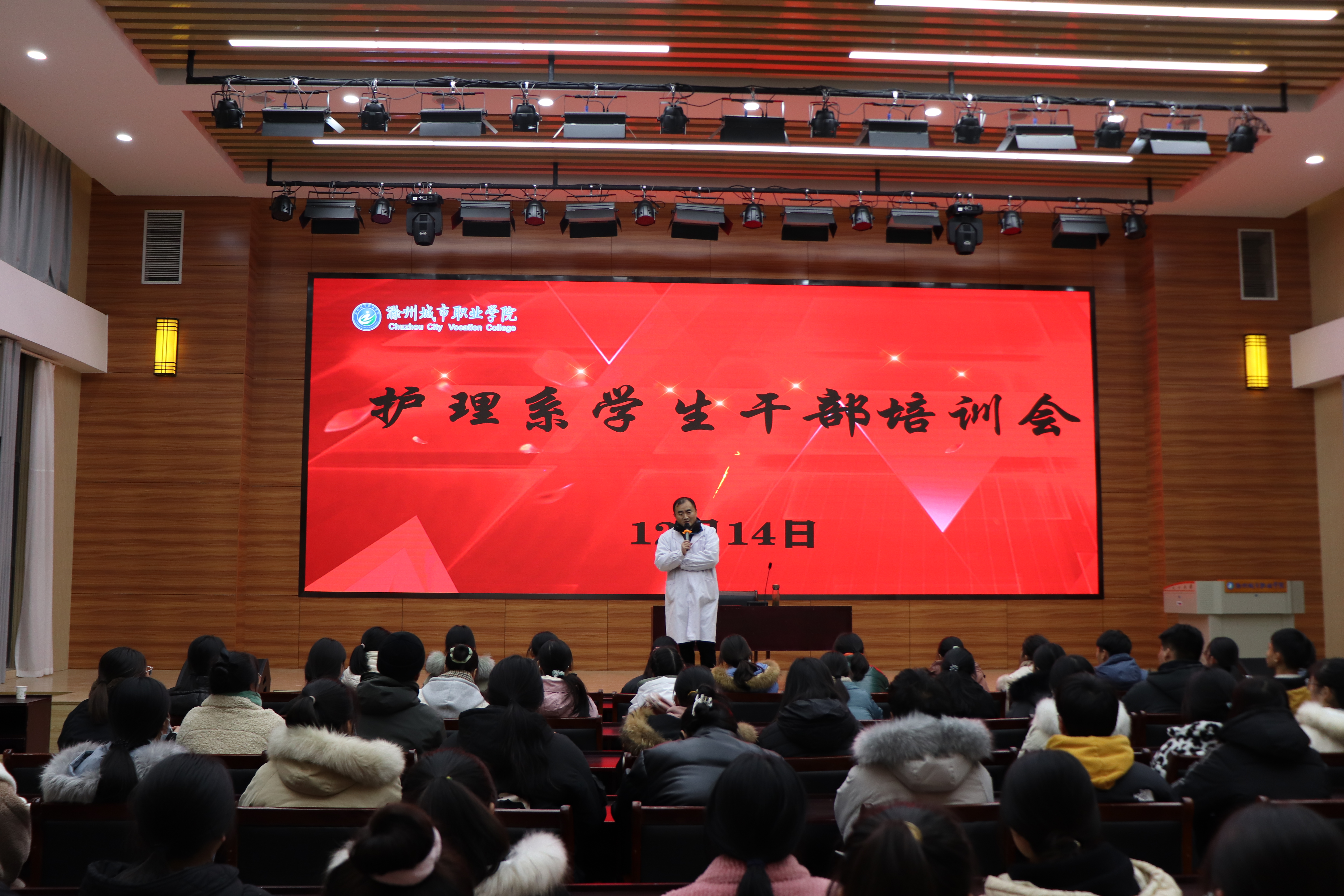为提高护理系学生干部的政治素养和工作能力,进一步发挥学生干部的模范带头作用,促进学生干部团队的发展和建设,护理系于12月14日晚,在第二学术报告厅开展学生干部培训会,培训会由护理系学管秘书卢齐伟老师主讲,各班班长、副班长、治保委员及部分寝室长代表参加了培训。