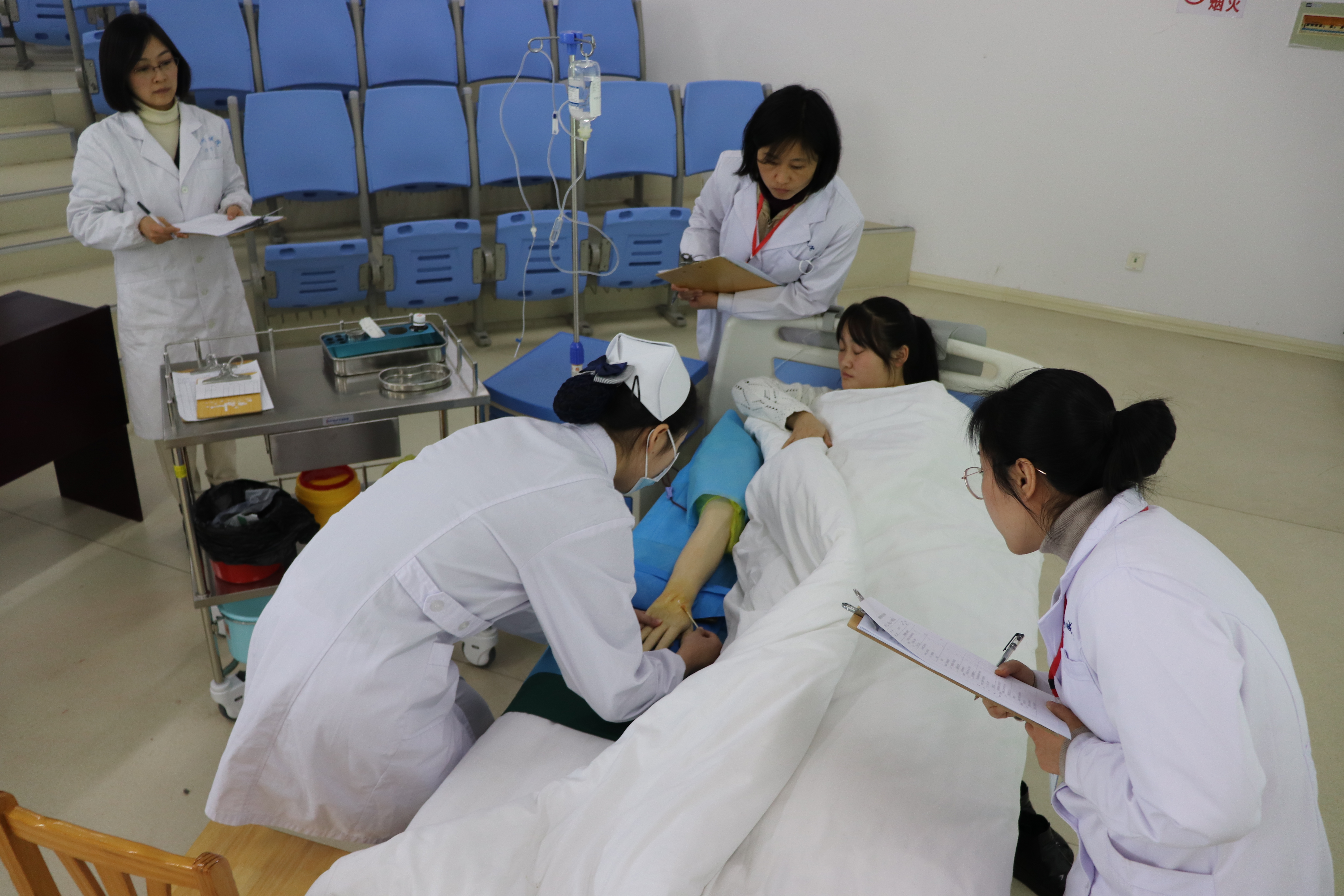 技能大赛是检验职业院校人才培养质量的重要标准,护理系在多年的技能大赛举办和参赛中不断获取经验,已将技能大赛的培训及参赛工作列为每年的重点工作。根据工作安排,护理系于9月开始计划并制定护理、助产、老年健康照护与社会照护三个项目的的技能大赛。本次比赛参照省级技能大赛标准设置统一情境,并增加了标准化病人的使用。护理专业技能大赛决赛要求学生根据病例完成心肺复苏、静脉输液两项操作;助产专业技能大赛要求学生完成产前外阴消毒和产时新生儿护理两项操作;老年健康与社会照护技能大赛要求学生分析病例并完成老年人测量腋下体温、使用轮椅转运老年人两项操作。