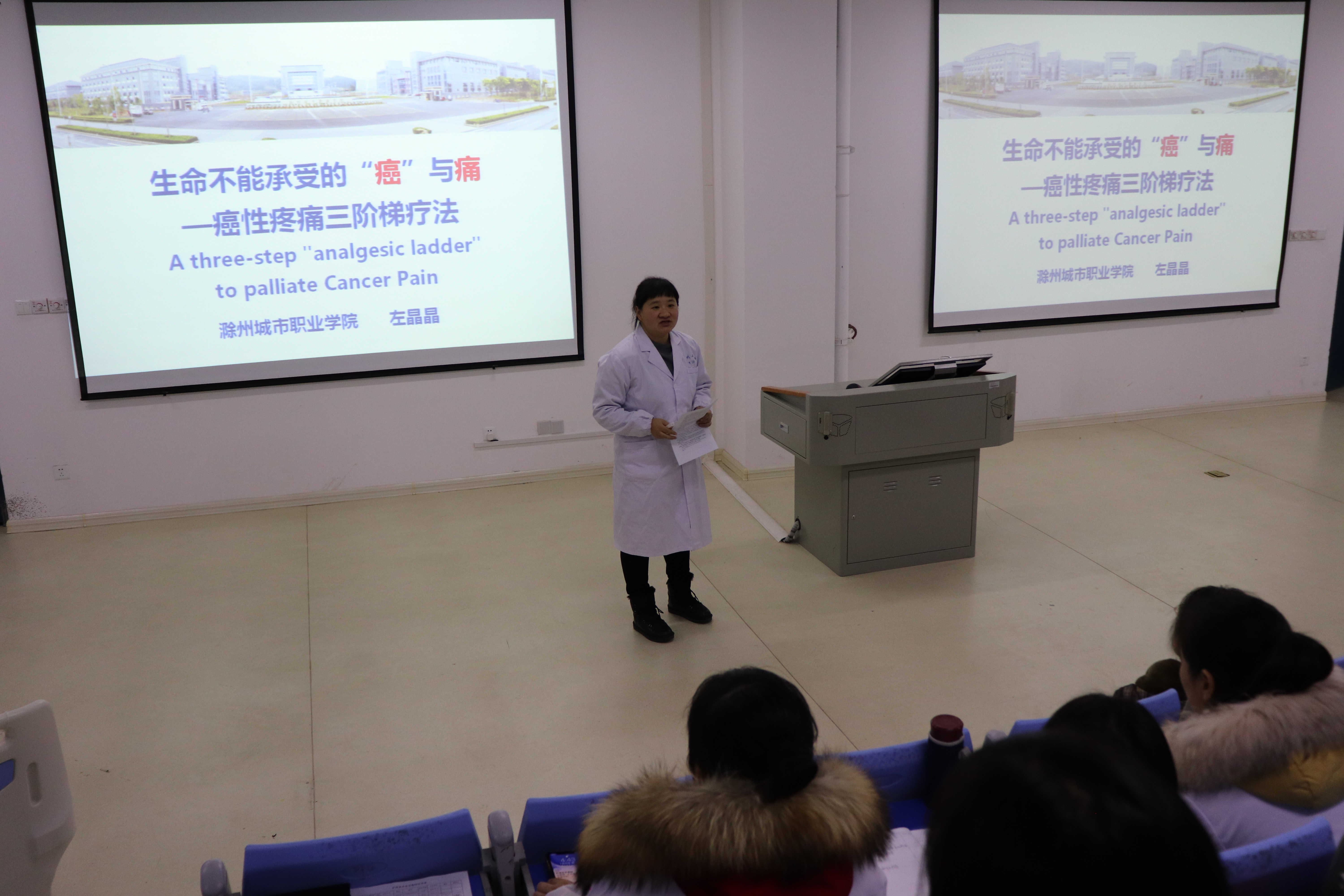 会上,系副主任左晶晶部署了期末考试、社招返校面授等工作,并为广大教职工开展了《癌痛的三阶梯疗法—课程思政融入教学案例》的学术讲座。左主任的精彩讲座让大家对思政内容融入专业课程的认识有了进一步的提升,赢得与会教师的热烈掌声。大家纷纷表示:聆听讲座受益匪浅,拓展了思路,在今后的教学过程中要主动发挥教书育人的主渠道作用,为培养合格的护理人才做出应有的贡献。