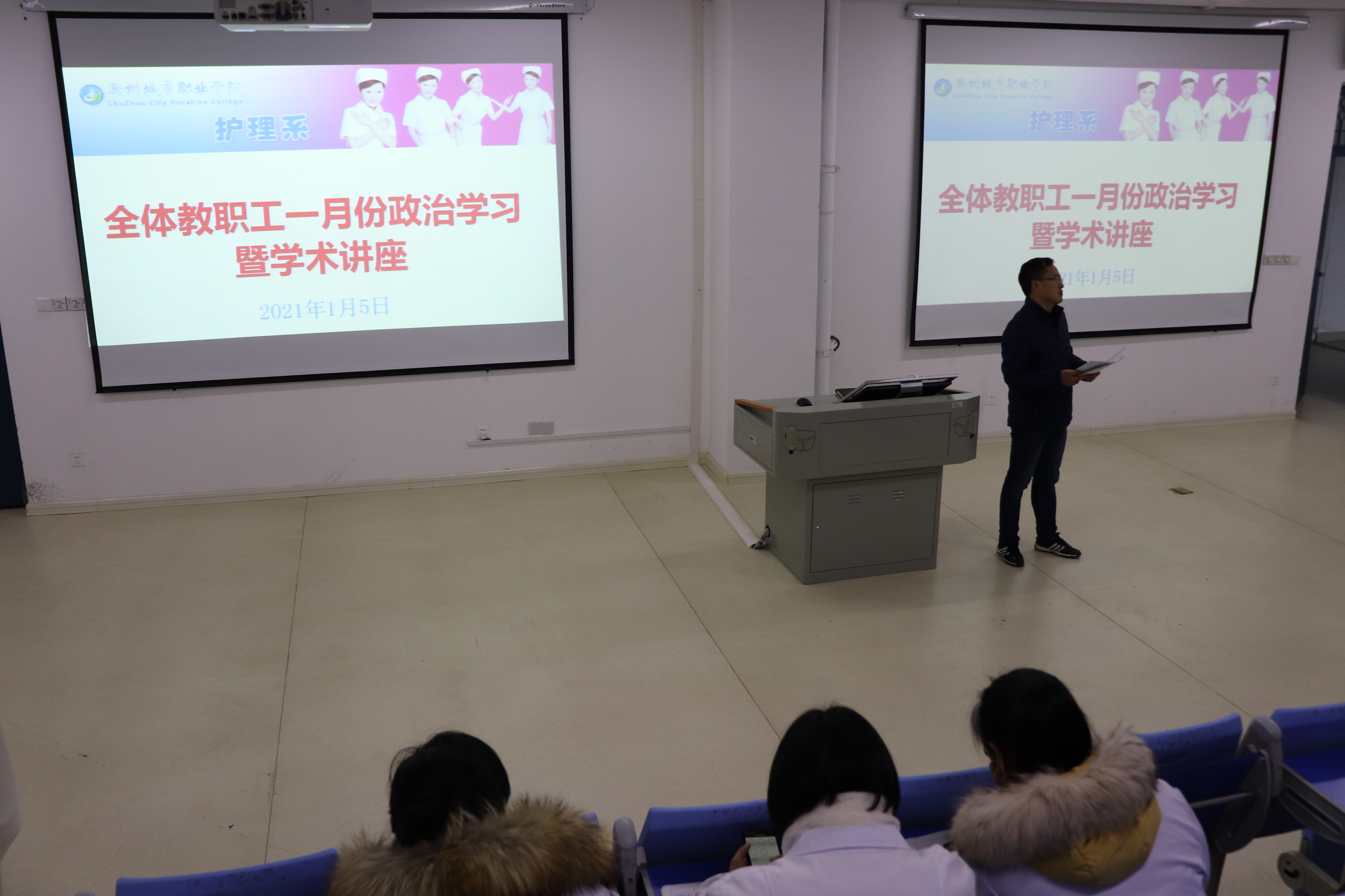 1月5日下午,护理系在B3-211举行全体教职工一月份政治学习暨学术讲座活动。系主任章正福主持会议,系全体教职工参加会议。