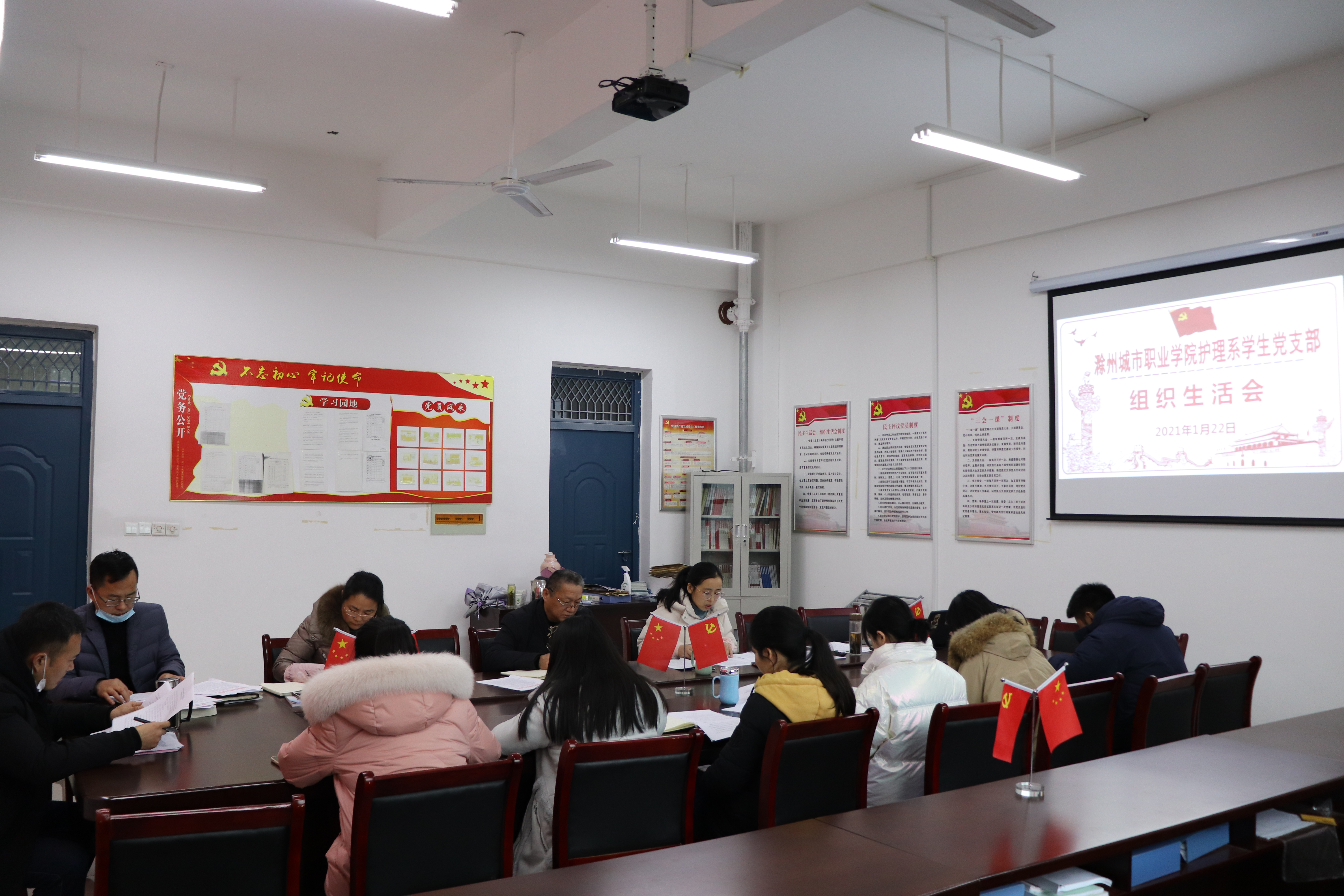 根据学院党委《关于召开2020年度基层党组织组织生活会和开展民主评议党员工作的通知》精神,护理学生党支部于2021年1月22日上午9:00在党员活动B3-106室开展了2020年度支部考核、组织生活会和民主评议党员会议,联系领导院党委委员、副院长施向阳,护理系党总支书记蔡季秋,副书记朱启来以普通党员身份参加会议。支部全体党员参加了会议,会议由支部书记秦海娇主持。