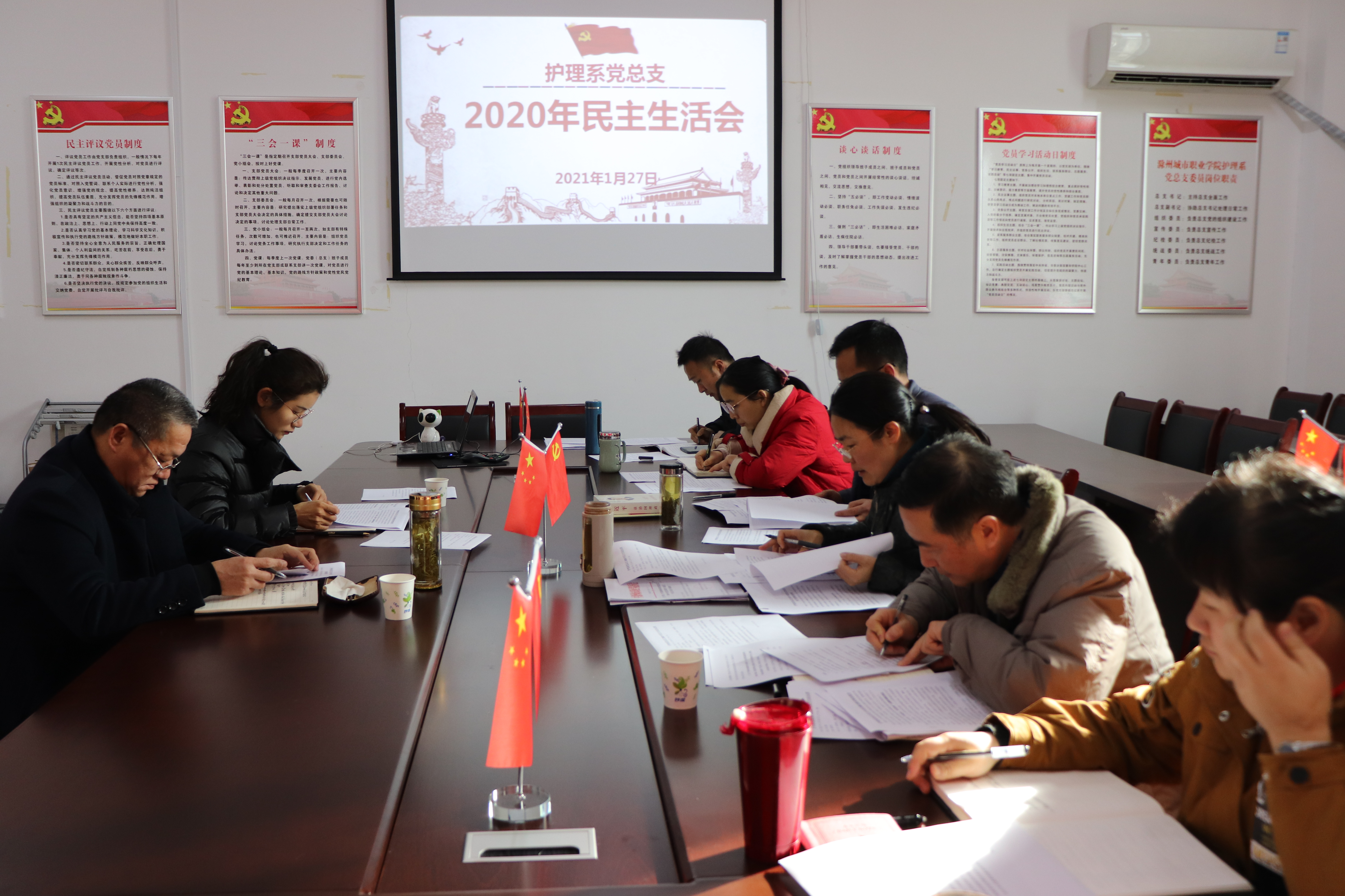 护理系党总支对开好这次民主生活会高度重视,扎实做好会前各项准备工作。系党总支班子深入学习习近平新时代中国特色社会主义思想,贯通学习《习近平谈治国理政》第一、二、三卷,精研细读习近平总书记在党的十九届五中全会、全国抗击新冠肺炎疫情表彰大会、纪念中国人民志愿军抗美援朝出国作战70周年大会、中央经济工作会议、中央政治局民主生活会、省部级主要领导干部专题研讨班、中央纪委五次全会重要讲话精神,认真学习习近平总书记考察安徽重要讲话指示精神,认真学习党章、《中共中央关于加强党的政治建设的意见》、《关于巩固深化“不忘初心、牢记使命”主题教育成果的意见》,进一步打牢了开好民主生活会的思想基础和理论基础。采取书面征求意见、召开座谈会等形式,广泛听取各方面的意见建议。书记与总支支委,总支支委之间,支委与本人组织关系所在党支部党员代表广泛开展谈心谈话。蔡季秋主持起草总支班子对照检查材料,班子同志认真撰写个人发言提纲。