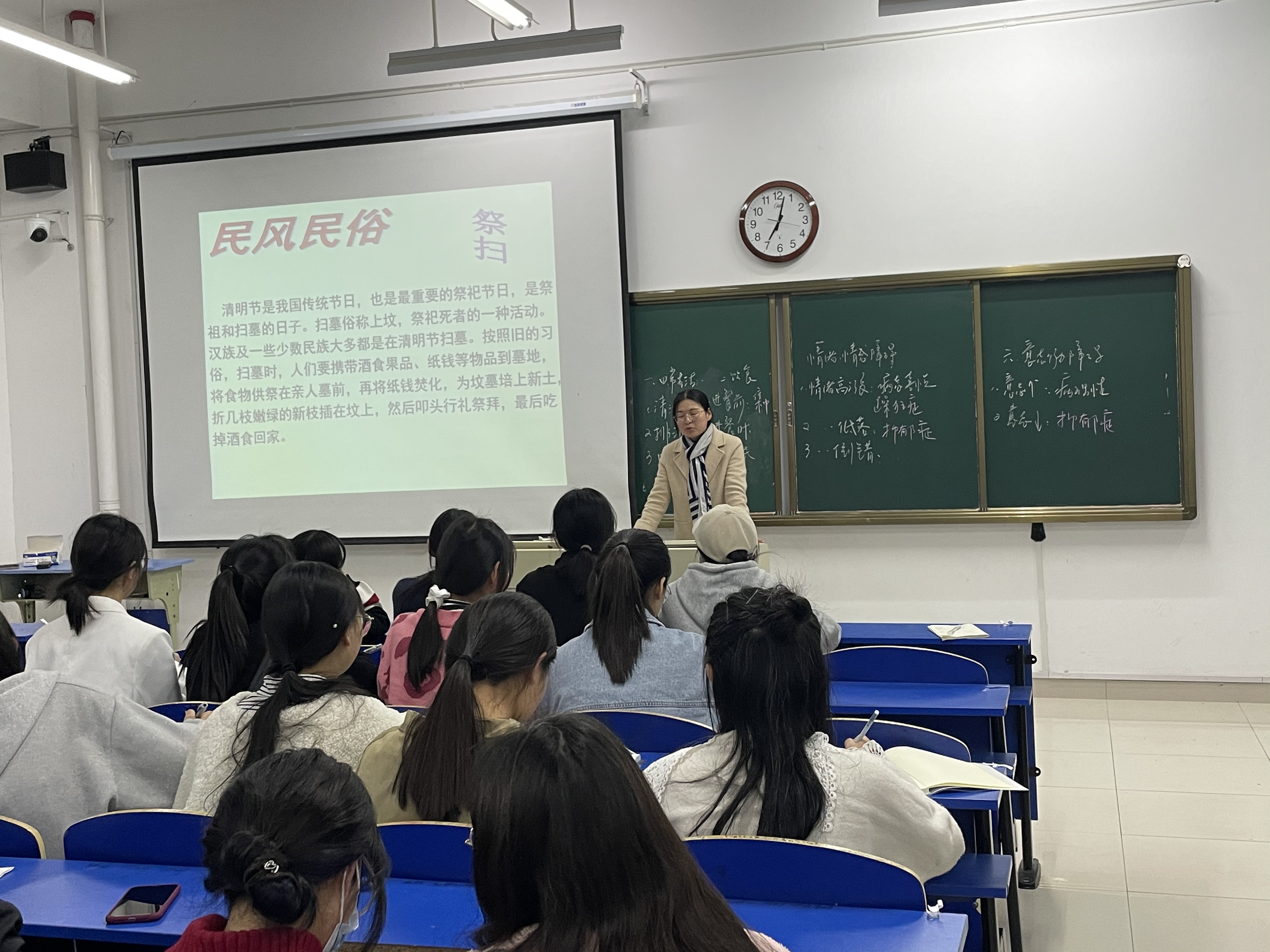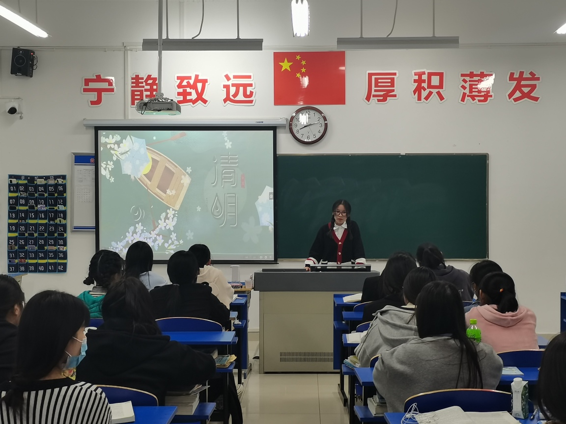清明节放假前夕,团总支书记王艳老师向所有团学学生干部开设了一场关于清明节文化知识的讲座,介绍清明节相关习俗,带领同学们学习英雄先烈的先进事迹,向青年团员讲述了长征途中“半条被子”、“半根皮带”的故事,以及刘少奇、张云逸带领新四军取得半塔保卫战胜利的英雄事迹。我们的红色江山是千千万万革命先烈抛头颅洒热血,用生命换来的,王老师号召团员青年缅怀革命先烈,不断利用党史这本丰富的教科书,启迪心灵,锤炼意志品格,做到知史爱党,知史爱国。