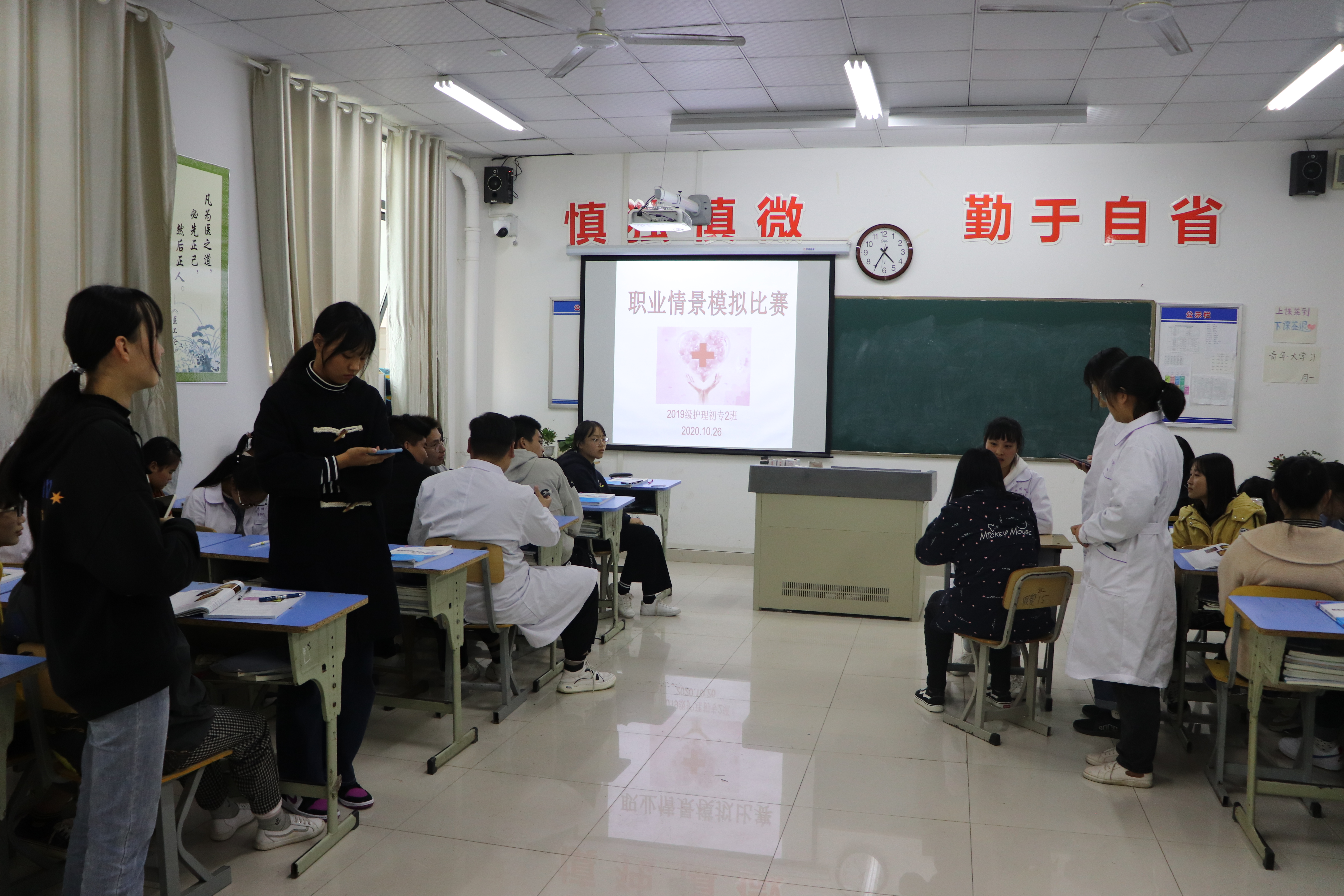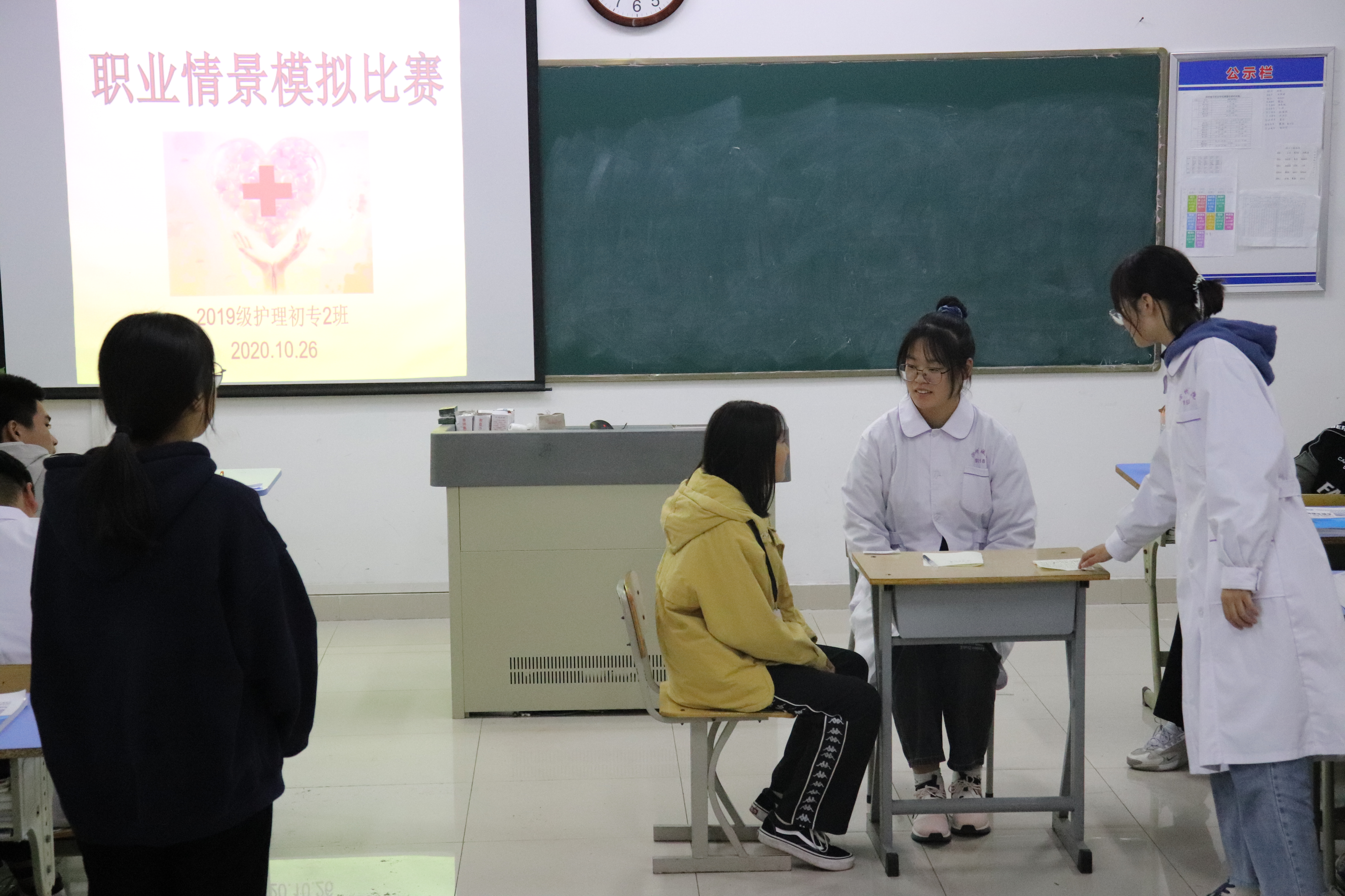 为深入推广优质护理服务工作理念,促进护理事业可持续发展,规范护士职业行为,10月26日,护理系2019级护理初专2班的同学们自发的以寝室为单位,举办了护理服务职业情景剧模拟比赛。各寝室长担任此次情景剧比赛的评委。