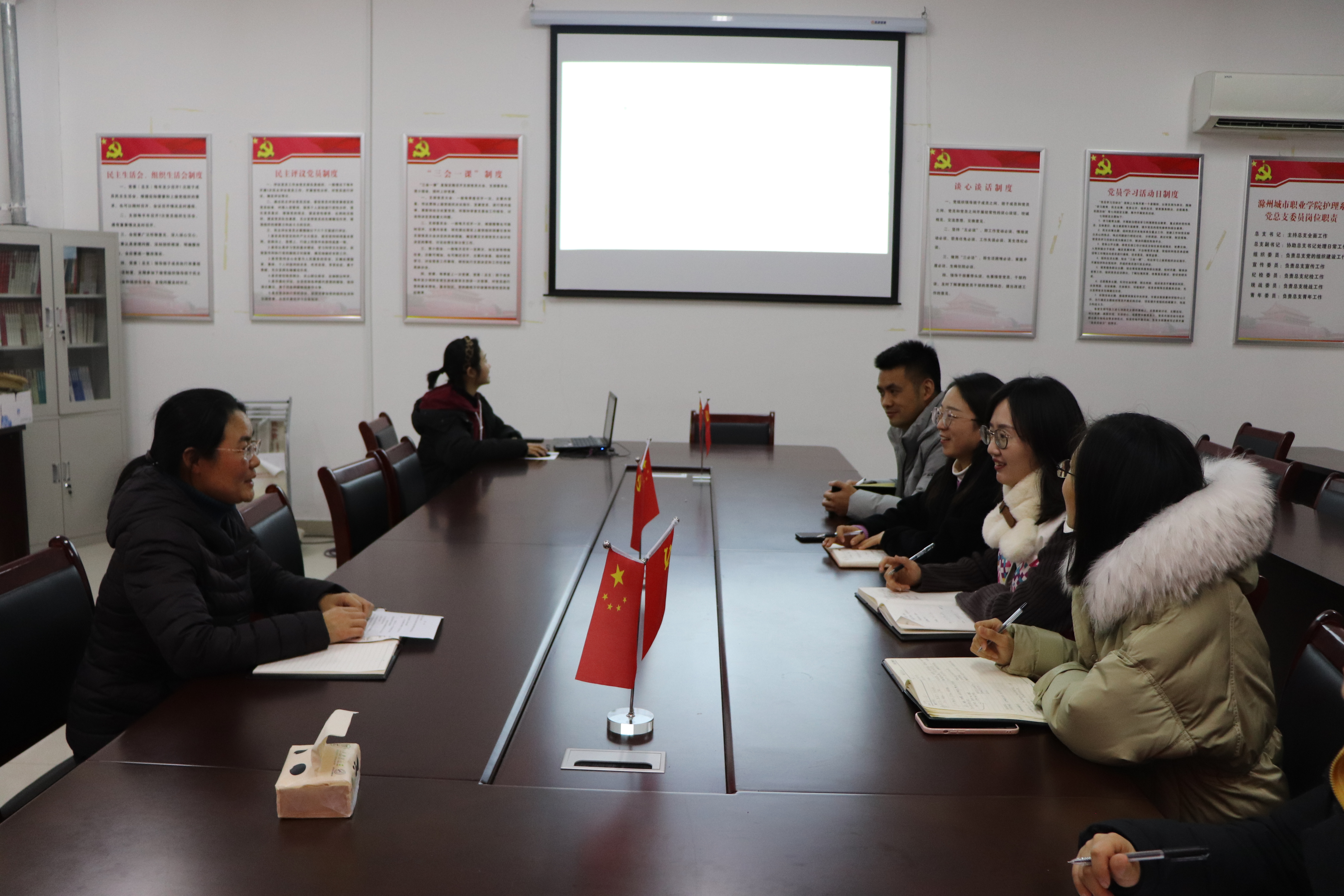 2020年12月11日下午,护理系于B3-106召开辅导员工作会议,会议由护理系党委书记蔡季秋主持,全体辅导员参加。