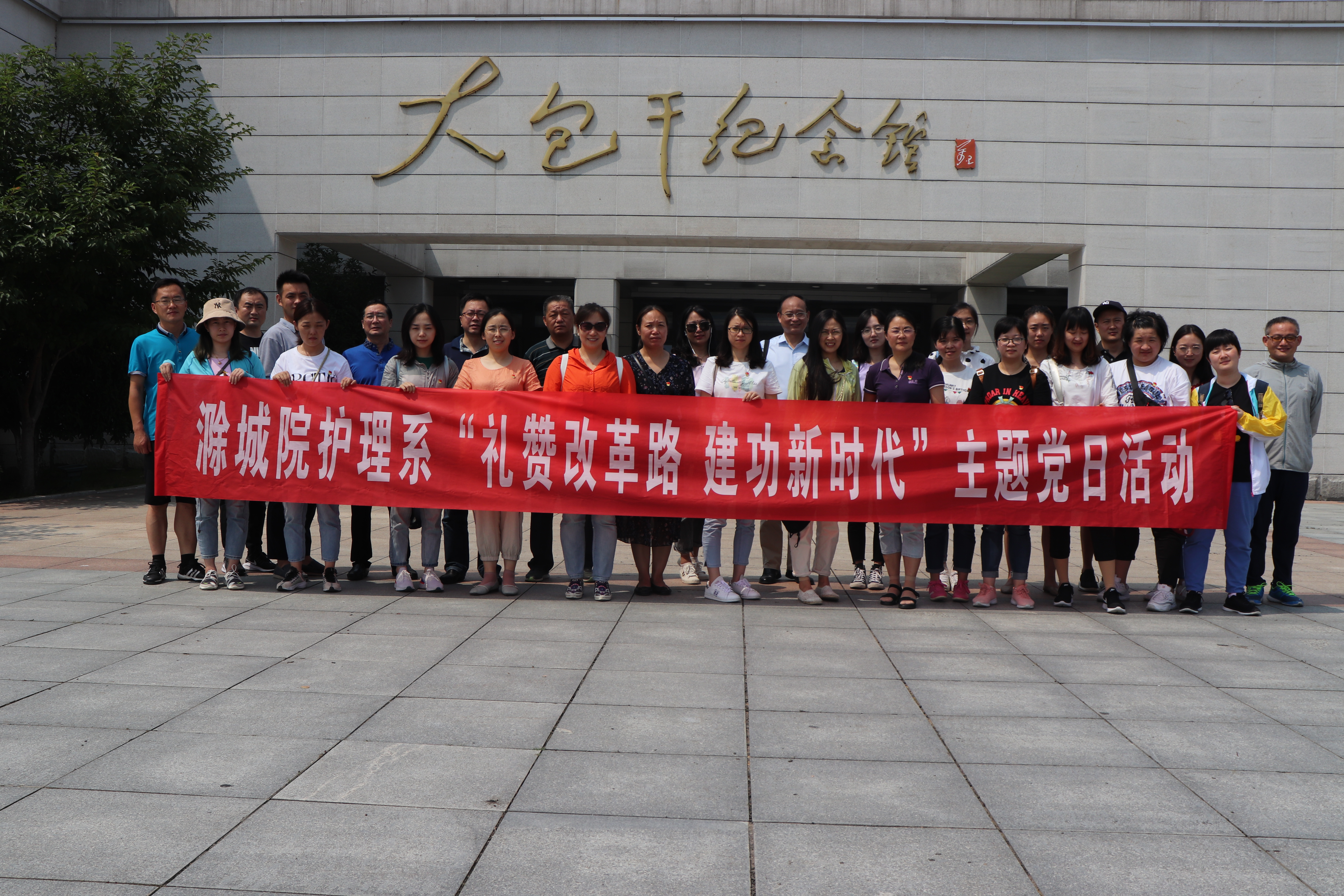 为了庆祝建党99周年,感悟改革发展历史,弘扬先进学习模范,进一步激发党员干部的改革创新意识和责任担当意识。7月7日,护理系党总支组织全体党员赴中国农村改革发源地——安徽省凤阳县小岗村开展主题教育活动。党委委员、副院长施向阳与系全体党员、部分学生骨干、入党积极分子近40人参加活动。