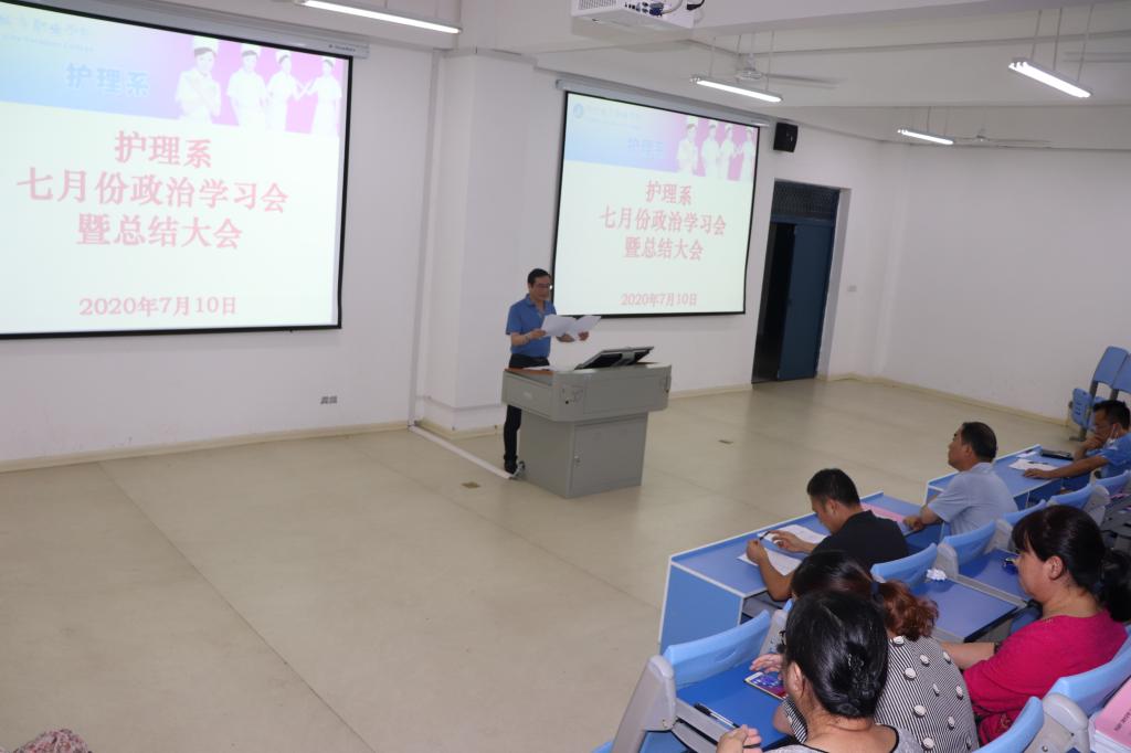 7月10日下午,护理系在B3-110召开七月份政治学习会暨学期工作总结会议,系全体教职工参加了会议,会议由系主任章正福主持。