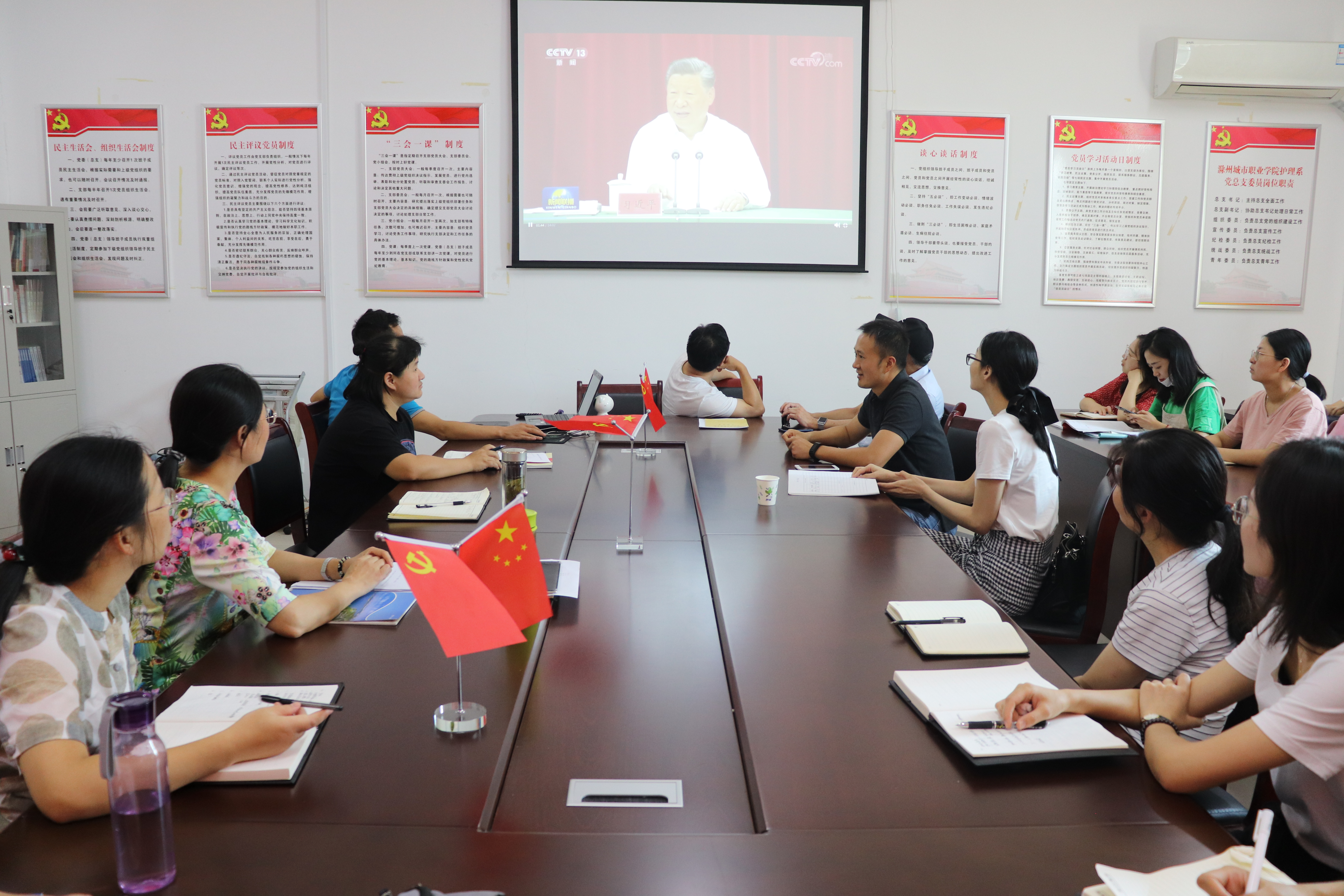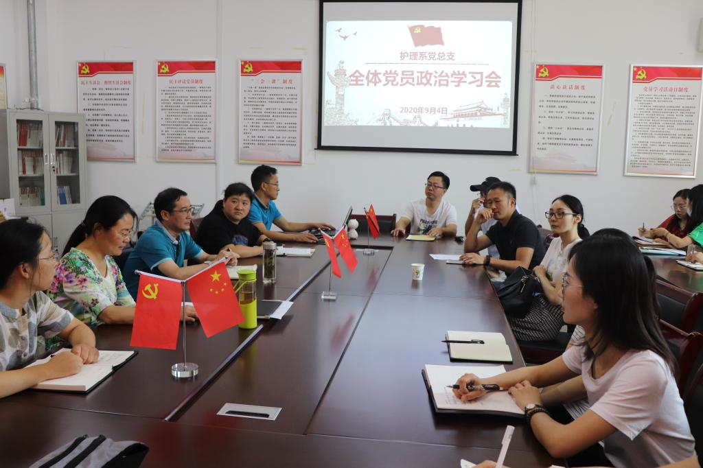 9月4日,护理系党总支在党员活动室举行9月份全体党员政治学习会,深入学习贯彻习近平总书记视察安徽重要讲话精神。会议由系党总支书记蔡季秋主持,系党总支全体党员参加学习。
