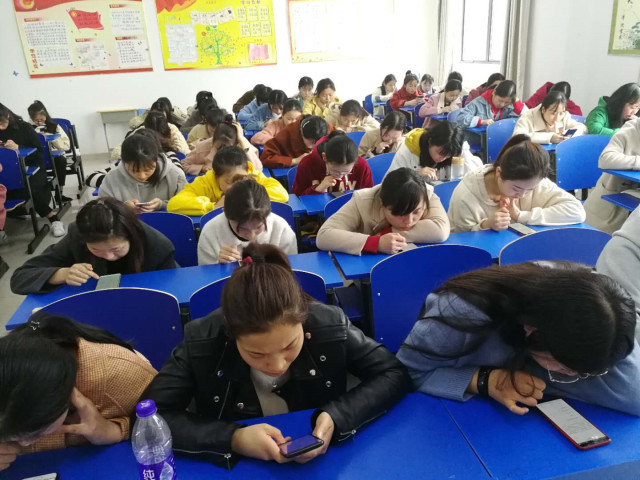 2019年3月29日下午的护士资格证辅导摸底考试中,护理系21个护考辅导班级教室里鸦雀无声,每个人都在认真地看着自己的手机。他们在考场中玩手机?不,他们正在紧张地进行考试。
