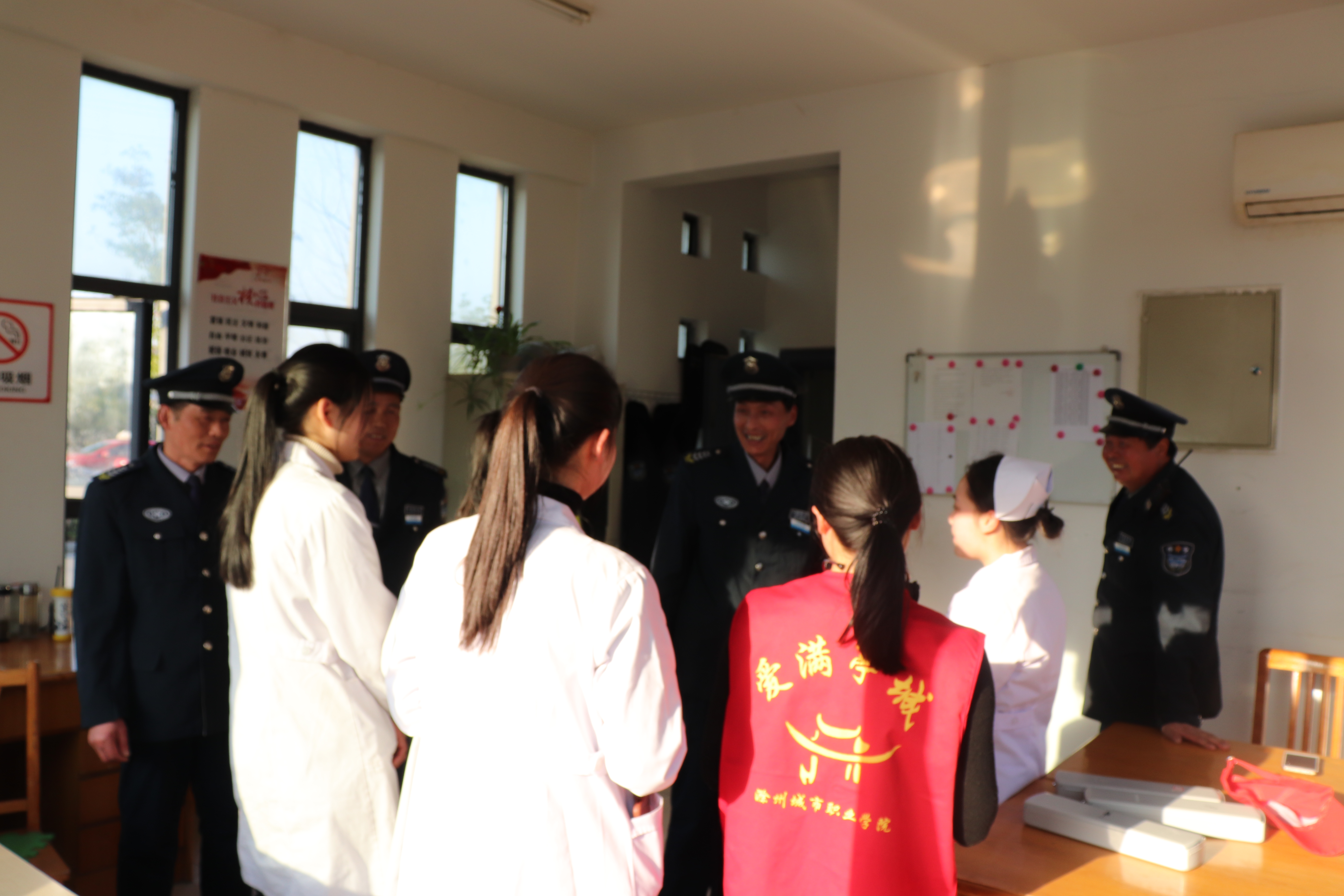 为了弘扬社会主义核心价值观,弘扬知恩图报的优良传统和崇德尚礼的德育精神,感恩反哺物业工作人员对学院各项服务工作的辛勤付出,3月15日下午,护理系南丁格尔志愿者服务队18护理高专(6)班的志愿者们在后勤服务中心物业办公室和学院门卫室开展了关爱义诊服务活动。