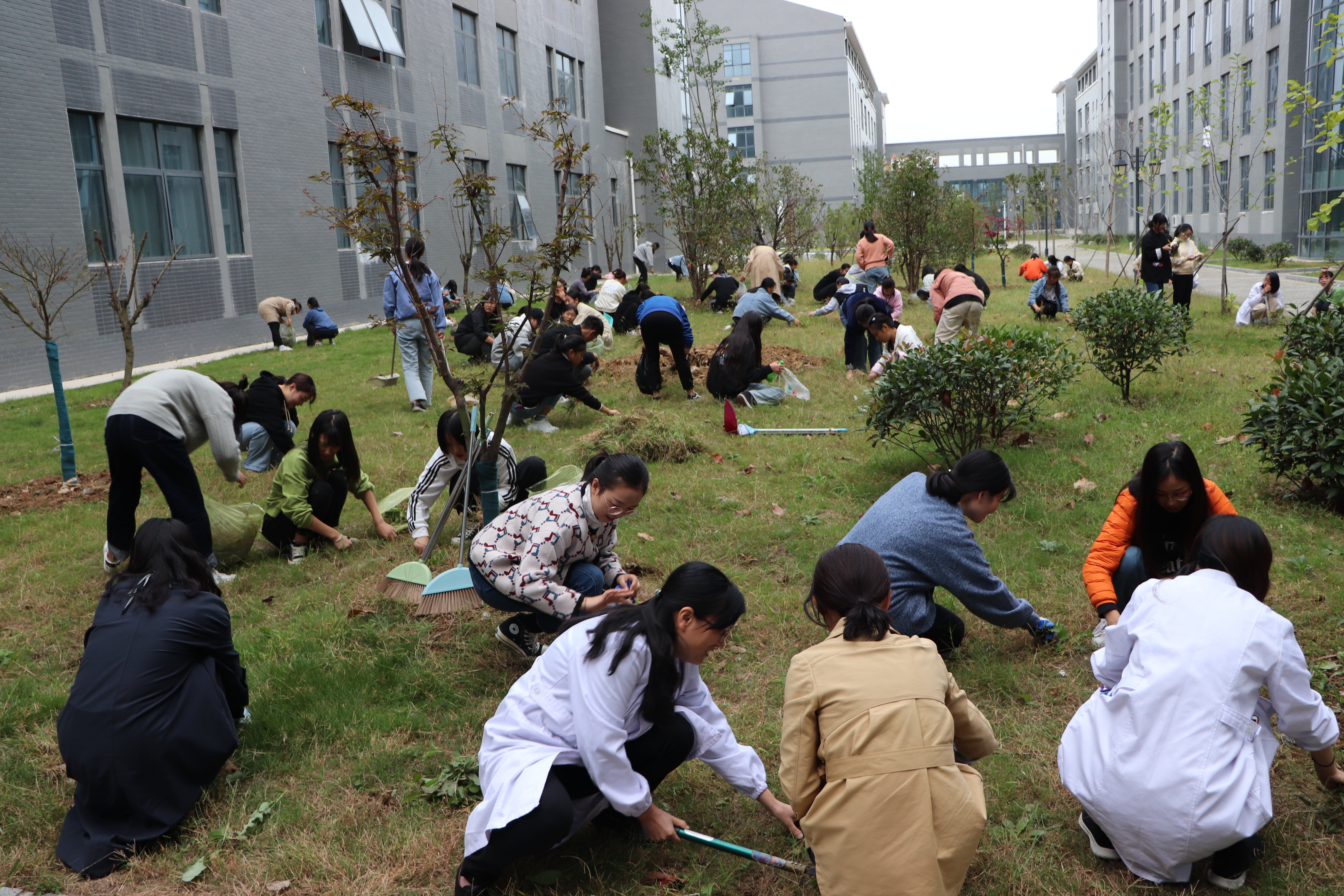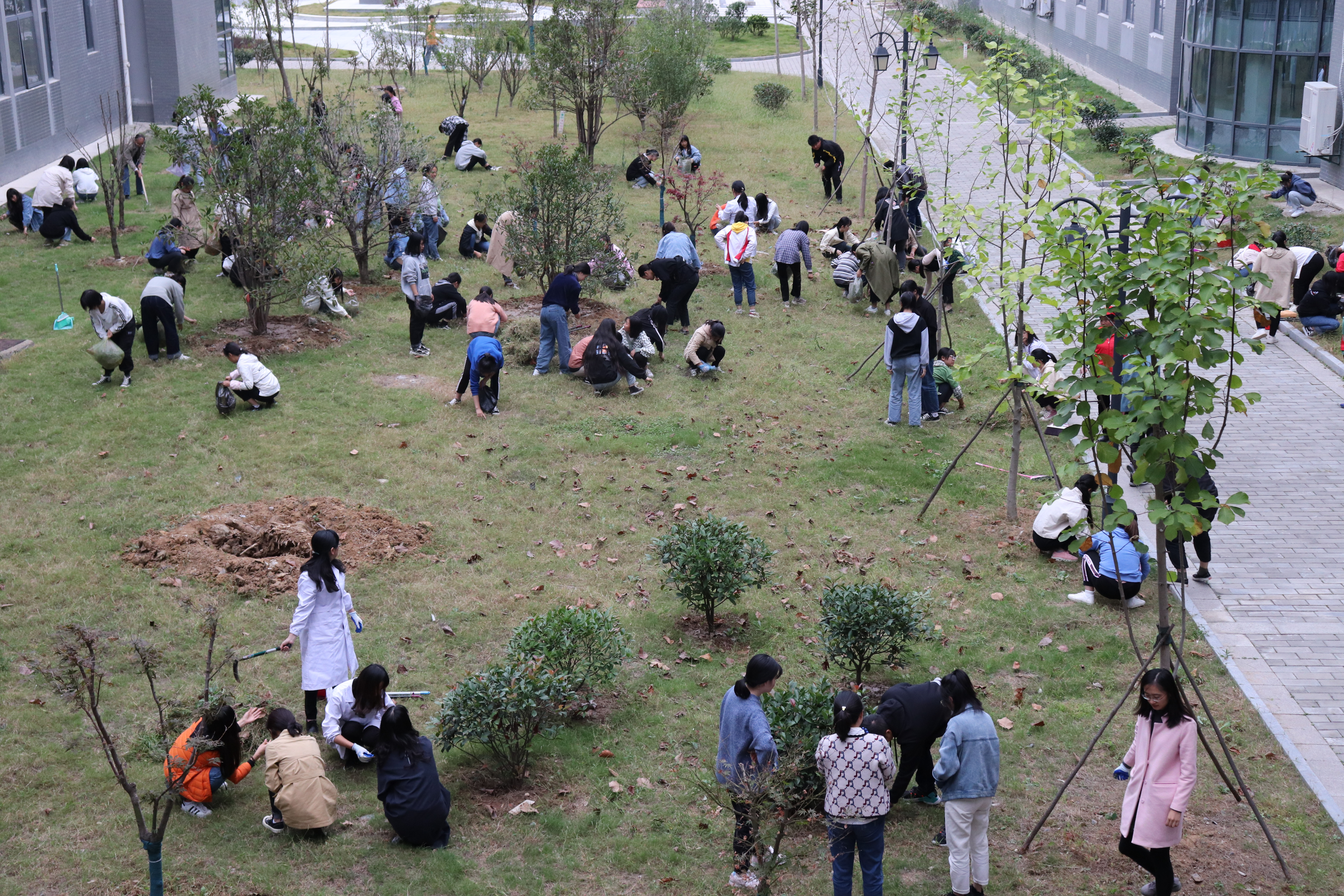 因季节交替,绿化带滋生大量杂草,影响树木和草坪的生长,也影响到校园环境的美观。在与物业交流,借好铁铲、镰刀和手套后,护理系党总支将志愿服务活动场所选定在b2-b3教学楼之间绿化区,大家在集中学习研讨后,立即投入到清除杂草的劳动中。过程中,大家积极肯干,不怕脏不怕累,师生一边劳动一边交流,充满着欢声笑语。