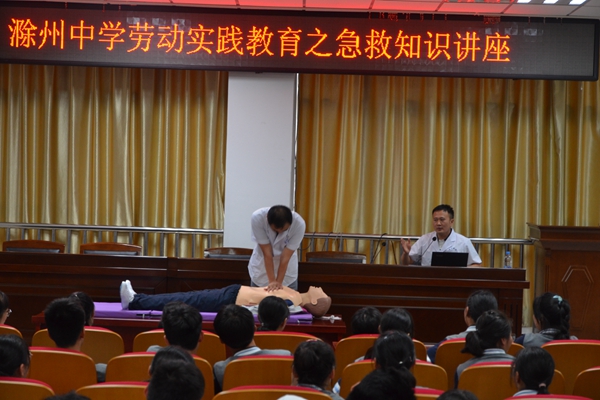 为了提高滁州中学学生的健康意识,普及日常急救理论知识,形成人人关爱生命,重视健康的良好氛围。6月22日下午,我系李勋华和卢齐伟老师到滁州中学给学生们举行劳动实践教育之急救知识讲座。滁州中学工会主席韦正昌、护理系党总支书记蔡季秋参加了此次活动。