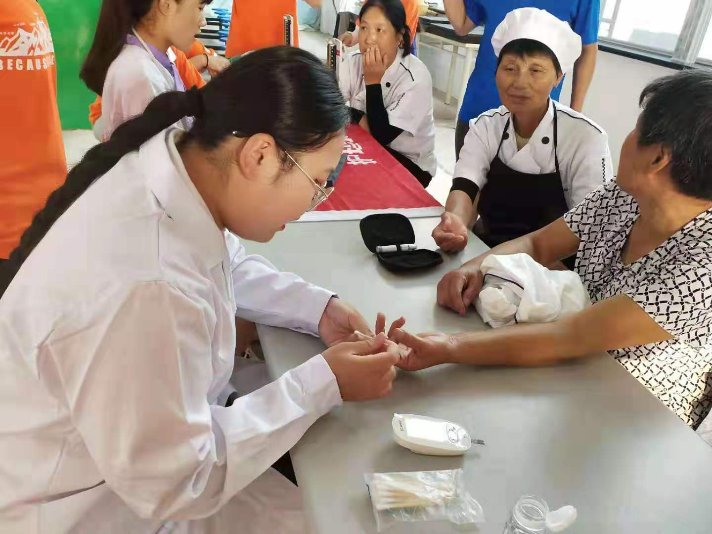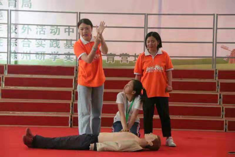 在营地中,队员们利用自己专业知识,为前往营地学习的中小学生进行了心肺复苏急救知识培训,并利用休息时间为营地的工作人员测量血压血糖,宣传卫生保健知识。