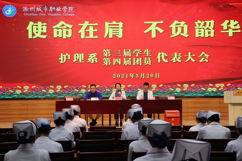 5月20日下午,护理系在学院第二报告厅召开第四届团员代表大会暨第三届学生代表大会。系党总支书记蔡季秋、学管秘书卢齐伟、学生党支部书记李勋华、系团总支书记王艳等领导老师出席了会议,会议代表共84名,出席大会的代表是来自全系近40个班级的优秀学生,代表着全系近1600名学生,具有广泛的代表性,并拥有选举权。系党总支副书记朱启来主持会议。