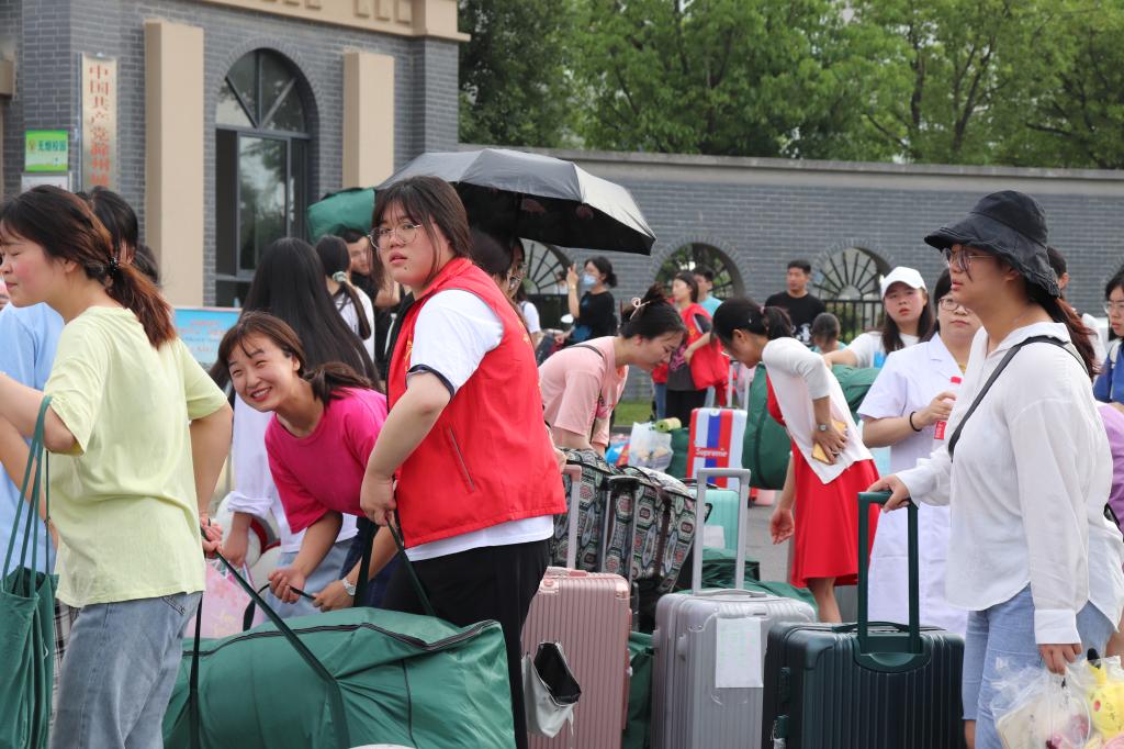 昨日,实习学生都把大包小包行李打包运放在护理系各教学楼门厅。6月7日早晨7点,党员教师和入党积极分子早早就来到教学区,纷纷前来帮助学生解决难题。师生志愿者穿梭于教学楼、校门和大巴车之间,想学生之所想,急学生之所急,一趟又一趟地帮助运送行李,有的志愿者运送达几十次。搬运过程中,师生志愿者积极发扬不怕苦、不怕累的实干精神,撸起袖子、手提肩扛、团结互助,展现了新时代党员志愿者的精气神。在搬运过程中,老师还和实习学生交流沟通,祝愿实习生在未来的实习、工作中一切顺利,希望他们努力提高自身的护理技能,丰富实践经验,为校增光,为社会主义建设添砖加瓦。广大同学也纷纷表示感谢老师们和志愿者的辛勤工作,期盼在医院实习的学习和生活更美好。