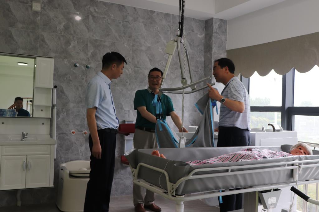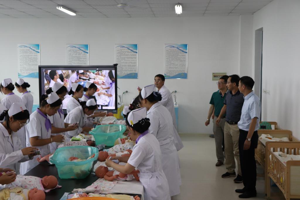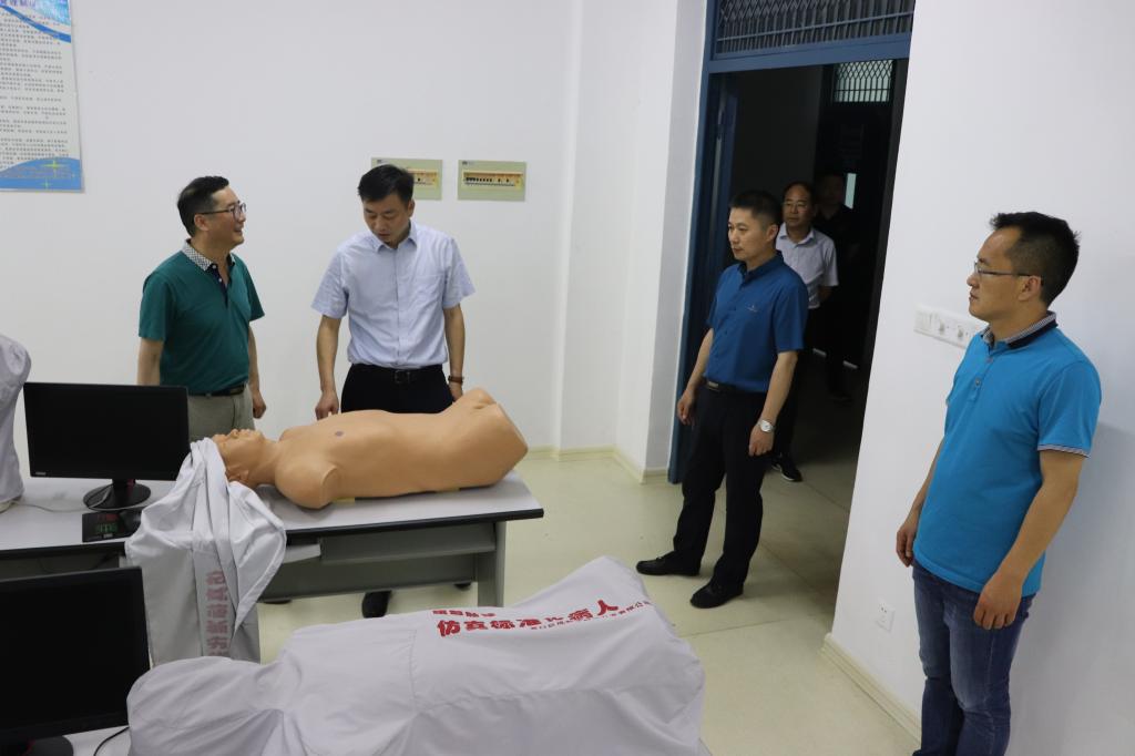 汪上院长一行还对护理系现代护理实训中心进行调研。汪院长实地察看了监控室、模拟ICU、多媒体示教室、心肺检查、老年护理等实验实训场所,并听取相关工作汇报。汪院长指出,一要进一步规范实训室的建设,加大实训室周边的文化营造,以环境建设为载体,进一步彰显不同专业文化特色;二要不断优化布局,在满足教学工作的前提下,对现有的实训室开放时间作合理化调整,最大限度提高实训室使用效率;三要强化服务理念,实训中心要服务专业,服务课程,服务人才培养,还要服务社会;四要积极吸取医院的先进管理模式,培养学生职业意识,使学生像一个“职业人”那样学习。