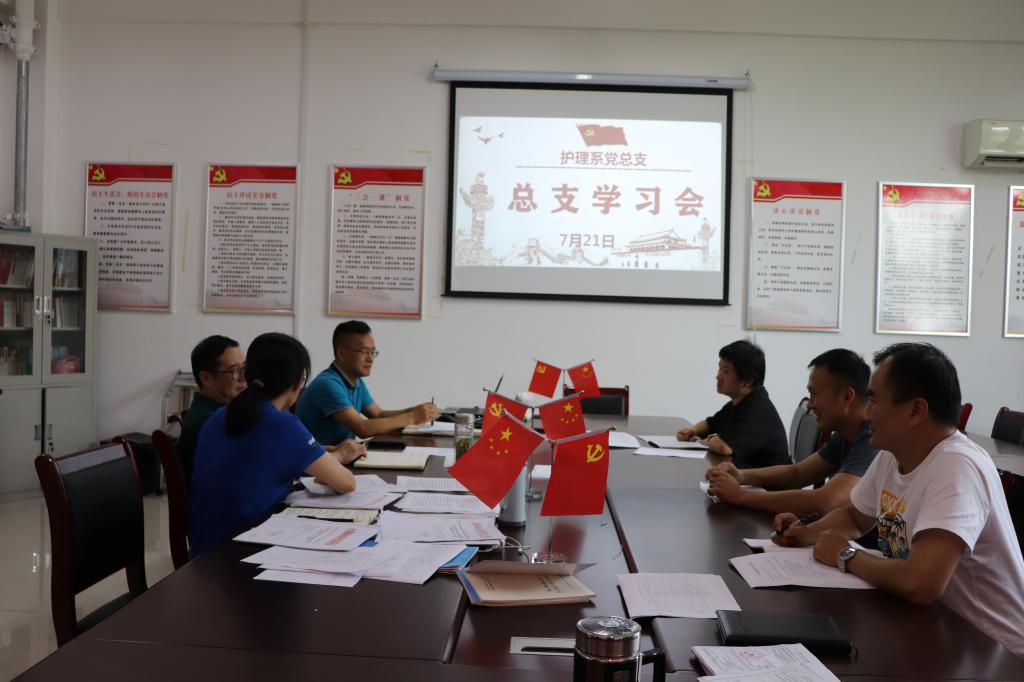 7月21日下午,护理系在党员活动室召开党总支学习会,深入学习贯彻习近平总书记“七一”重要讲话精神。系党总支书记蔡季秋主持学习会。