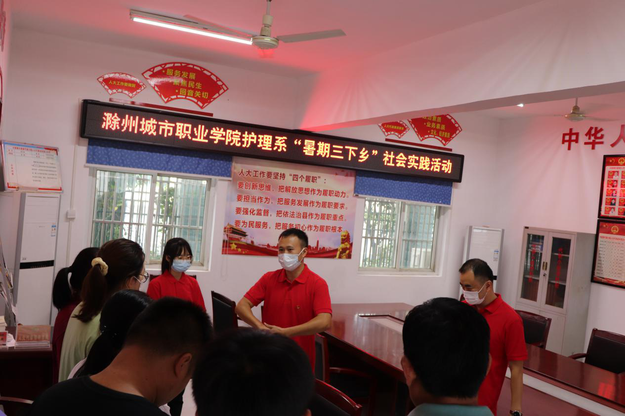为助力乡村振兴,丰富大学生的暑期生活,提升大学生服务意识,进一步提高广大群众的防灾避险、自救互救能力,滁州城市职业学院护理系大学生暑期“三下乡”社会实践团队在全椒县大墅镇开展了“急救知识我普及”宣传培训活动。