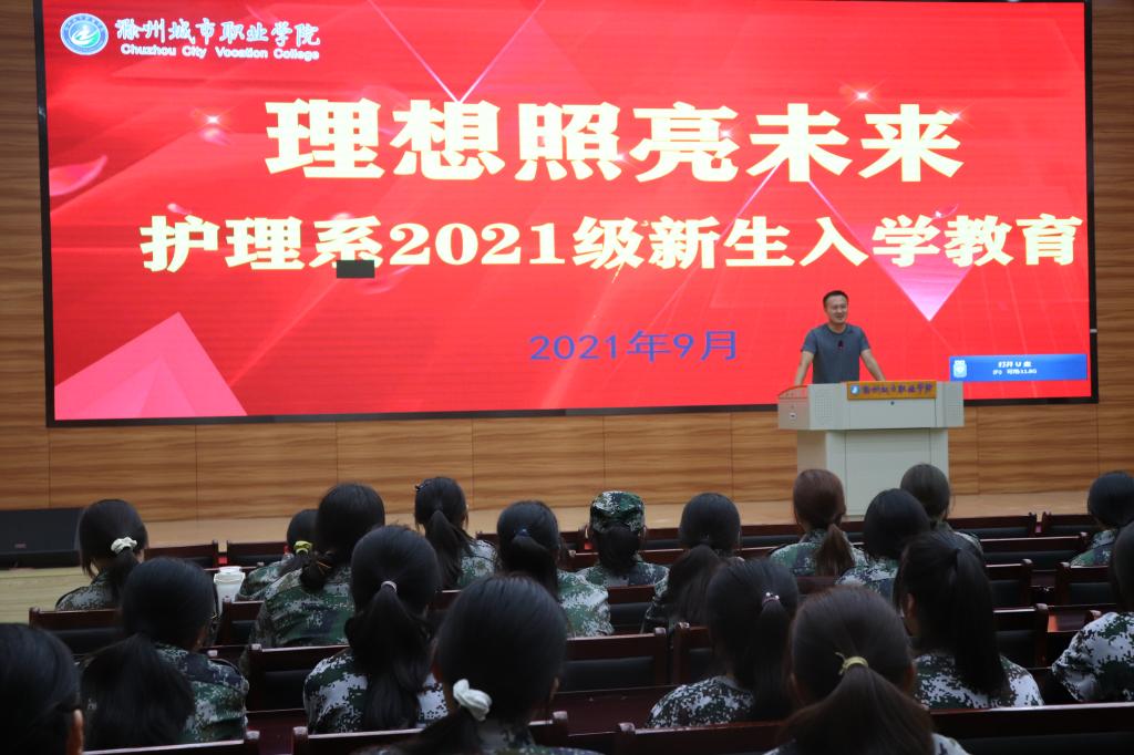 为深入学习习近平总书记“七一”重要讲话精神,落实立德树人根本任务,培养学生爱党爱国爱岗情怀,使2021级新同学更加充分了解学院和护理系,熟知护理、助产、老年保健与管理专业的情况以及系部学生管理制度和团学工作,加深学生的专业认同感,护理系于9月14日晚,在第二学术报告厅及各分会场为2021级新生召开了主题为“理想照亮未来”的入学教育,会议由护理系党总支副书记朱启来主持,护理系党总支书记蔡季秋,系副主任左晶晶,学管秘书卢齐伟、李勋华,团总支书记王艳,新生班级辅导员(班主任)以及护理系2021级全体新生参加会议。