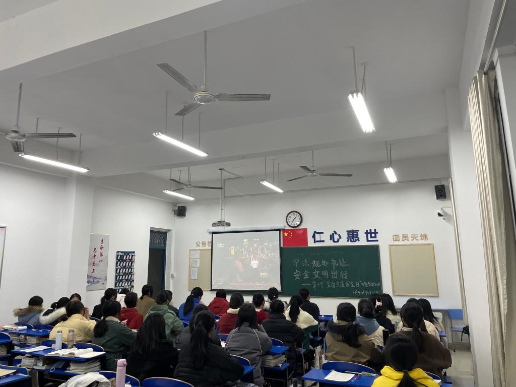 护理系全体学生于12月2日晚18:45集体在班级收看了中央文明办、公安部和中央广播电视总台联合制作了《平安行》专题节目。《平安行》以“守法规知礼让、安全文明出行” 为主题,分为“路·向远”、“车·向前”、“人·向暖”、“文明·向上”四个篇章。