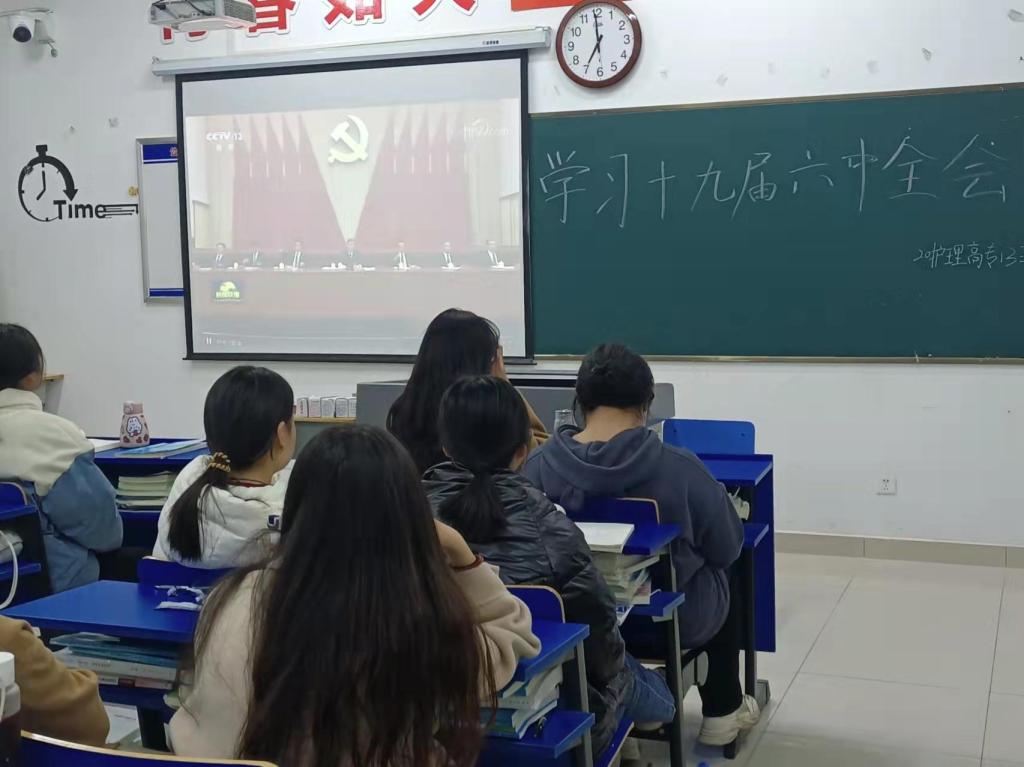 各班以听一场知史爱党百年党史专题系列学习、观看一集党史学习教育可视化教材、回忆历次党的六中全会、诵读党的十九届六中全会、学习全会审议通过的重磅决议所释放的重要信息六种形式深刻感悟党的十九届六中全会精神。从时间顺序,回望百年来共产党带领人民浴血奋战、百折不挠,结束了中国被压迫的历史,走向自信自强、守正创新,创造了新时代中国特色社会主义的伟大成就。