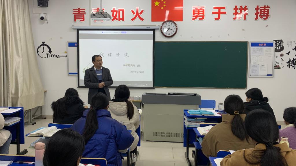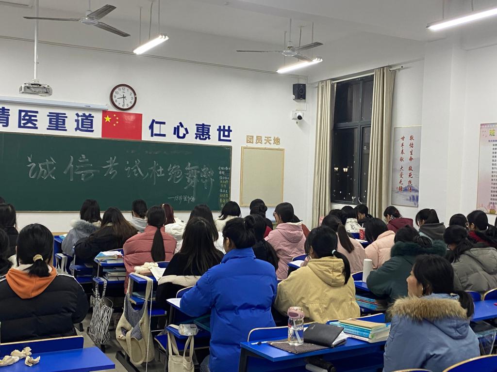 为了迎接即将到来的期末考试,倡导同学们端正考风、严肃考纪、文明答题、诚信应考,护理学院各班在12月23日晚上举行了“诚信考试 杜绝舞弊”的主题班会。