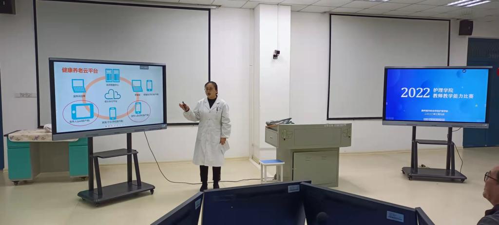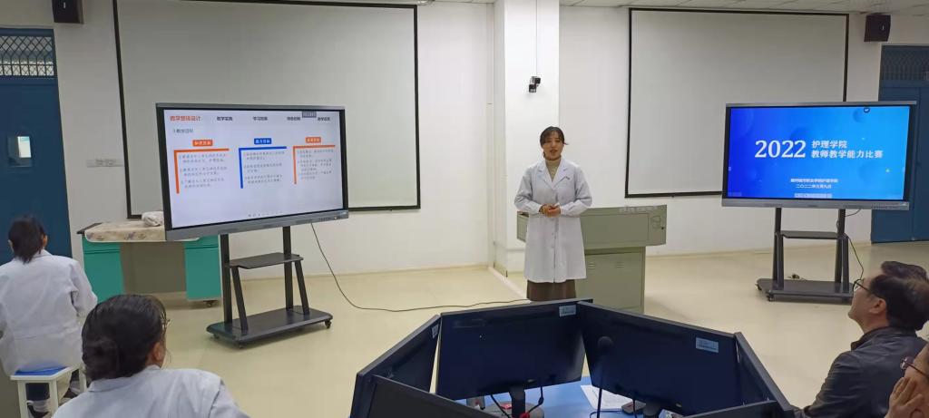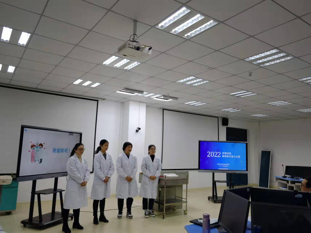 为推动护理学院教育教学改革,提升教师教学能力,3月9日下午2点30,护理学院在B3-312教室举行了2022年教师教学能力比赛院部选拔赛,共四个教师团队参加了比赛,护理学院副高以上职称教师担任评委,护理学院全体教师全程观摩了比赛。