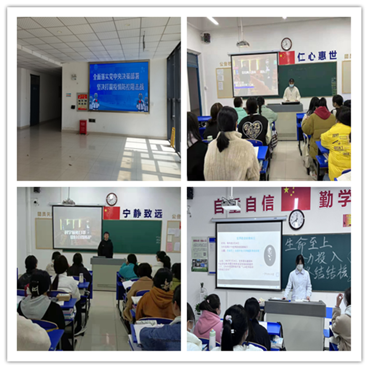 强化宣传,营造防控氛围。护理学院高度重视学生的教育引导工作,利用微信公众号、电子屏、主题班会等形式广泛宣传关于疫情防控政策要求,宣传科学防控知识,做好学生正面教育引导、心理疏导和舆情掌控。