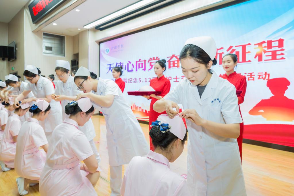 我校优秀毕业生、临床一线工作的护理前辈辛玲在致辞中指出,护士是没有翅膀的天使,广大护生要珍惜学习机会,坚定理想信念,敢于担当使命,成就幸福、充实、受人尊重的美丽人生。