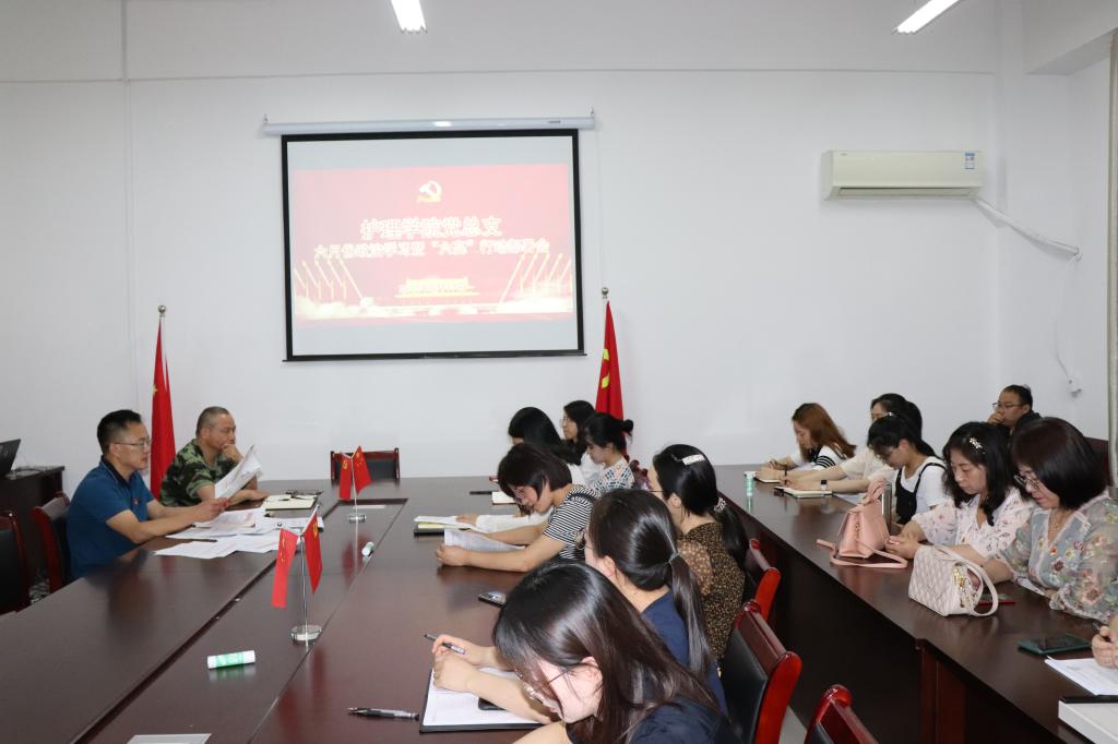 为扎实推进基层党组织标准化规范化建设,6月17日,护理学院党总支在党员活动室召开党员大会,开展六月份政治学习活动,部署暑期基层党组织建设“六亮”行动有关工作。党总支副书记朱启来主持会议,全体党员参加会议。
