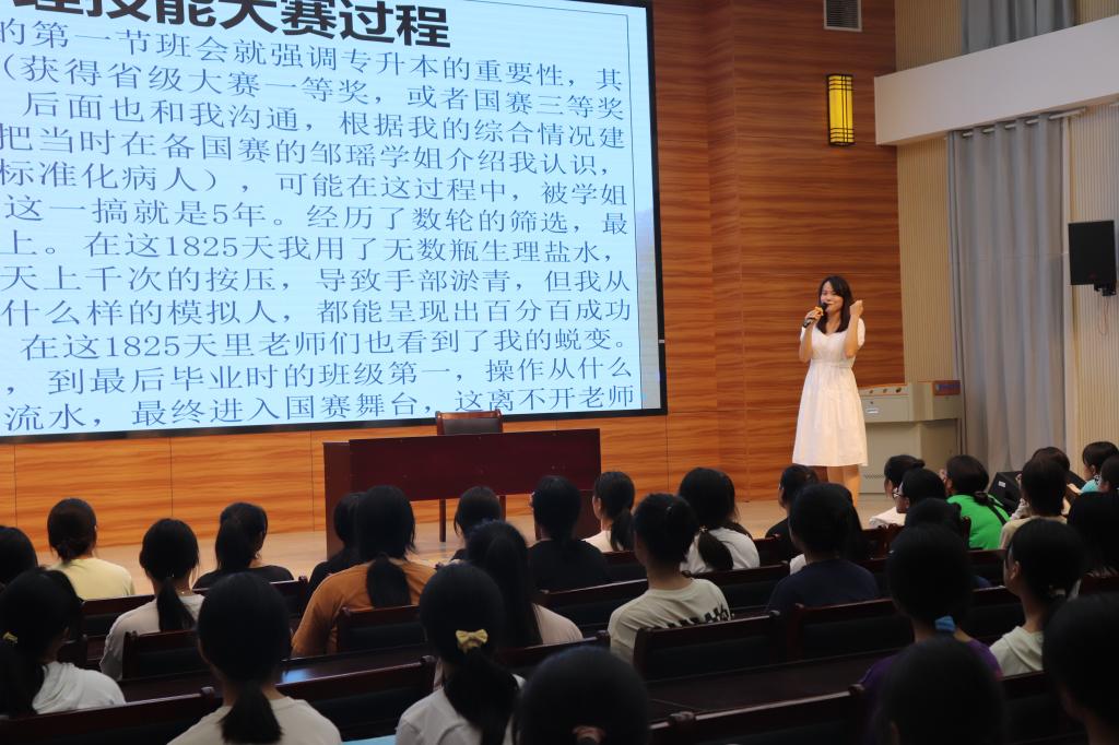 安徽省双优生、全国职业院校技能大赛高职组“护理技能”团体赛三等奖获奖团队孙颖、郑桂莲,安徽省双优生、专升本录取蚌埠医院的颜公婷,退伍军人、专升本录取蚌埠医学院的袁杰等四位优秀毕业生结合自己成长追梦历程,讲述自己的奋斗故事。优秀毕业生纷纷表示,在校学生要珍惜学习生涯,提早做好规划,利用学校的学习资源,勇于开拓属于自己的人生,让青春不留遗憾,别怕梦远路长,总有星河照耀,在不断奋进中成为最好的自己。最后,他们希望同学们多参加社会实践活动,在锻炼与实践的过程中提升综合素质和能力,让青春绽放绚丽之花。