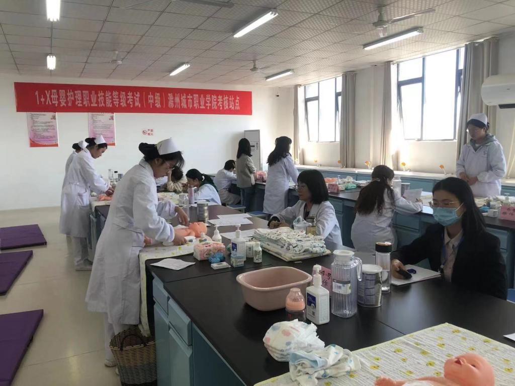 母婴护理技能等级证书的考务工作由教育部认证的第三方机构——“山东阳光大姐服务有限公司”考评站与护理学院共同负责实施,考核科目包括母婴护理理论知识考试和操作技能考核。在严格执行疫情防控常态化的要求下,科学制定了培训计划,选拔儿科、妇科教研室等科室的骨干教师组建母婴护理培训团队,为300名考生开展了精心的考前培训工作。