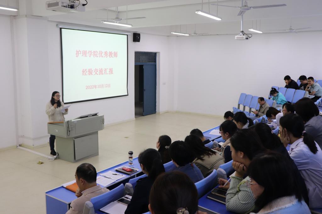 10月12日,在护理学院B3-110,护理学院举办了优秀教师事迹报告会。来自基护教研室的周霞和薛梅老师分享了各自的教育先进事迹和经验,她们以“捧着一颗心来,不带半根草去”的精神,发挥了榜样的作用,也以“赤诚之心、奉献之心”打动了在座的所有老师。