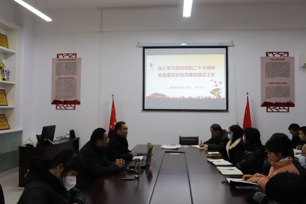 为深入学习宣传贯彻党的二十大精神,11月30日下午,滁州城市职业学院党委委员、纪委书记程一斌在护理学院B3-106党员活动室开展了主题为“深入学习贯彻党的二十大精神 全面落实好党风廉政建设工作”的宣讲报告。护理学院全体教职工认真听取了报告。护理学院党总支副书记卢齐伟主持了报告会。