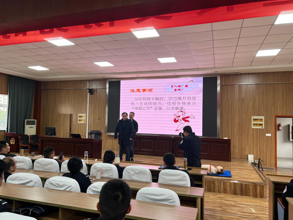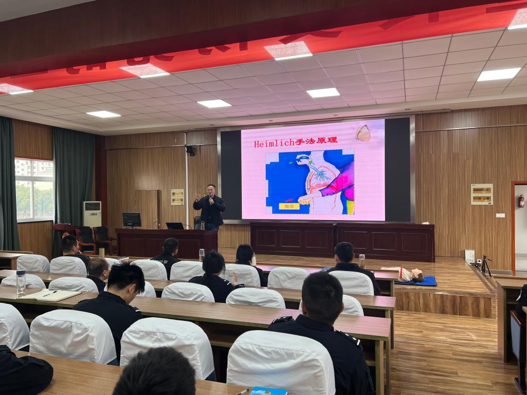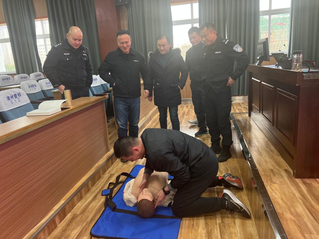 培训中,李勋华详细介绍了常见突发疾病的主要症状和现场处置方式,认真讲解和示范了海姆立克急救法、心肺复苏术等急救方法。参加讲座的一线干警热情高涨,纷纷上台互动交流,并在老师的指导下重点学习并实操了人工心肺复苏技术。