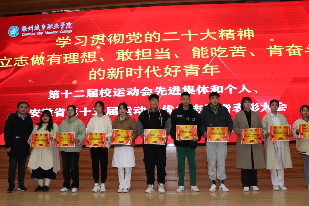 为学习贯彻党的二十大精神,落实立德树人根本任务,学习典型,2月27日下午,护理学院在第二学术报告厅召开表彰大会,表彰在校十二届运动会及安徽省第十五届运动会中涌现出的先进个人和集体。护理学院党总支副书记卢齐伟主持表彰大会,团总支书记王艳,学管老师张莹莹、蔡淼及150余名学生代表参加大会。