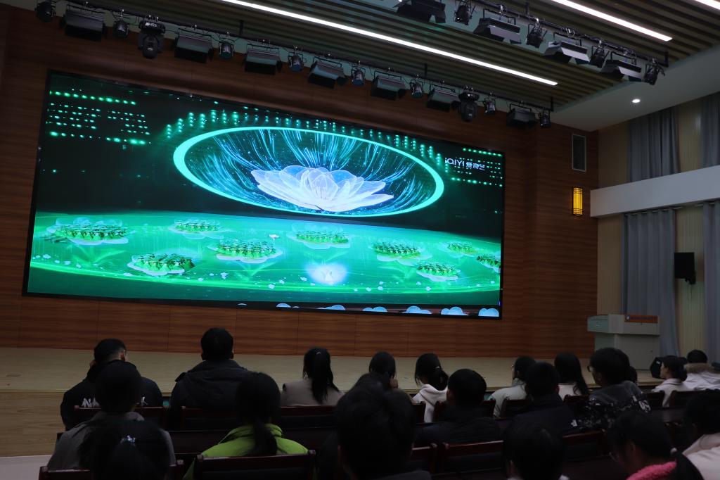 表彰大会利用视频展示形式拉开帷幕,记录了护理学院健儿在校第十二届田径运动会上顽强拼搏、奋勇争先的精彩瞬间,大家对健儿们的辛苦付出送去了雷鸣般的掌声。随后,与会师生一起观看了由护理学院240名学子参演的安徽省第十五届运动会开幕式展演节目《皖地之星》。同学们盛装出演,宛如朵朵鲜花在舞台上绽开。一朵朵茉莉花腾空升起,全场沉浸在如梦如幻、清丽幽美的景致之中。