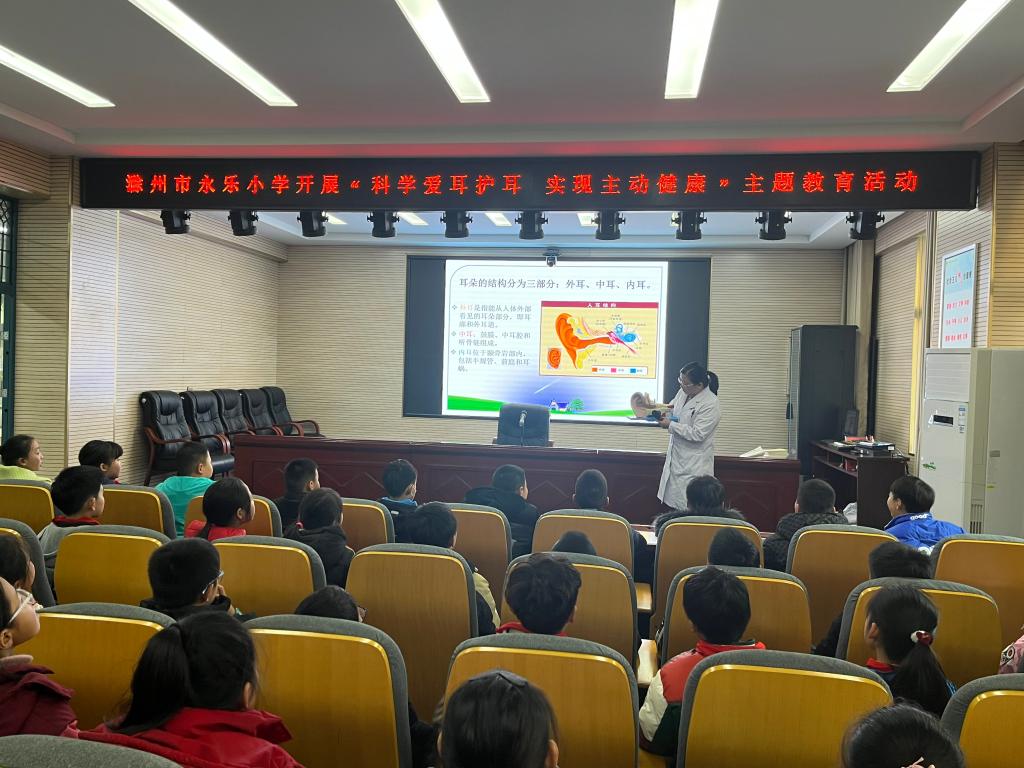 围绕今年的教育主题,周老师为永乐小学的小朋友们开展了一场有关听力的宣传讲座《爱耳护耳,从我做起》。周老师用通俗易懂的语言和耳道模型详细地为小朋友们介绍了耳部的相关知识以及耳聋的病因,症状和治疗方法。讲座结束后还有不少小朋友向周老师询问了一些自身听力方面的问题。