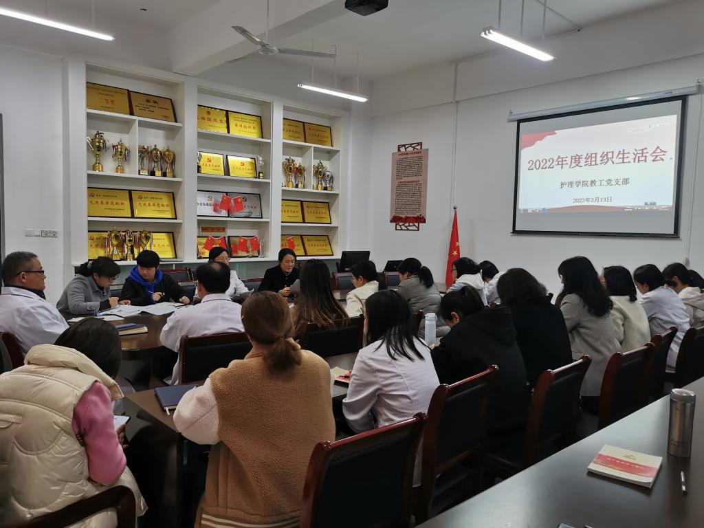 为深入学习贯彻党的二十大精神,坚持不懈用习近平新时代中国特色社会主义思想凝心聚魂,根据市委组织部《关于召开2022年度基层党组织组织生活会和开展民主评议党员工作的通知》要求和学校党委部署,3月13日下午,护理学院教工党支部召开2022年度组织生活会暨民主评议党员活动,护理学院党总支书记蔡季秋莅临并指导会议。会议由支部副书记黄萍主持,支部全体党员参加。