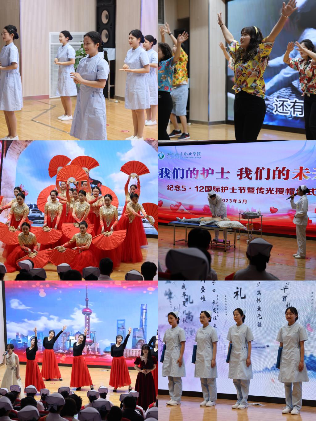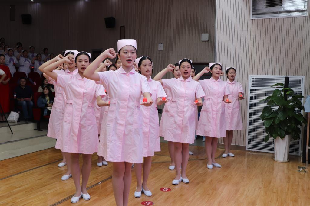 医护礼仪表演《礼贯中西 医路情长》、歌伴舞《不忘初心》、舞蹈串烧《洗手舞》、《你笑起来真好看》、急救技能展示《心肺复苏术》、舞蹈《医护阵线联盟》、舞蹈《辉煌中国梦》等节目轮番登场,师生才艺表演美轮美奂。蓬勃的朝气、青春的笑脸与精彩的演出交织,掌声雷动,场面热烈。纪念仪式在大合唱《中国护士之歌》中结束。