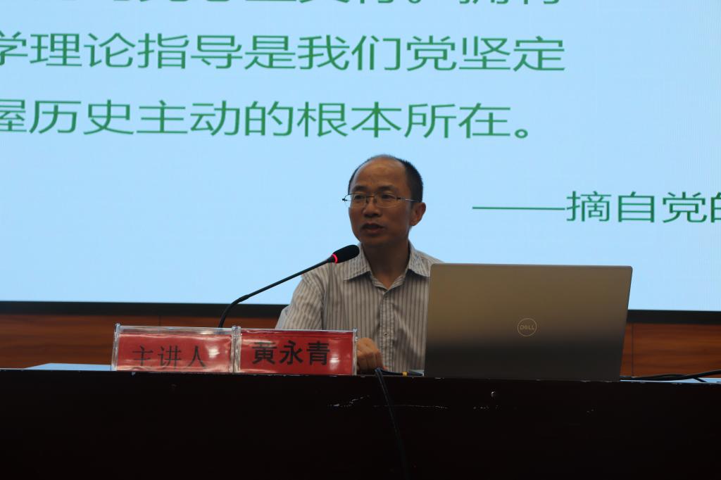 党的二十大报告指出:“马克思主义是我们立党立国、兴党兴国的根本指导思想。”黄永青教授以此为开篇,结合所学所感、所思所悟,分别从“什么是马克思主义”“为什么要推进马克思主义中国化时代化”“怎样继续推进马克思主义中国化时代化”三个层面,站位高远、深入浅出地为在场师生解读了党的二十大报告中的相关内容。理论宣讲过程中,黄教授还用三首音乐生动的诠释了马克思主义中国化时代化的进程。现场气氛热烈,不时发出阵阵掌声,与会师生纷纷表示,黄教授的讲解生动深刻、实事求是,听后很受启发。