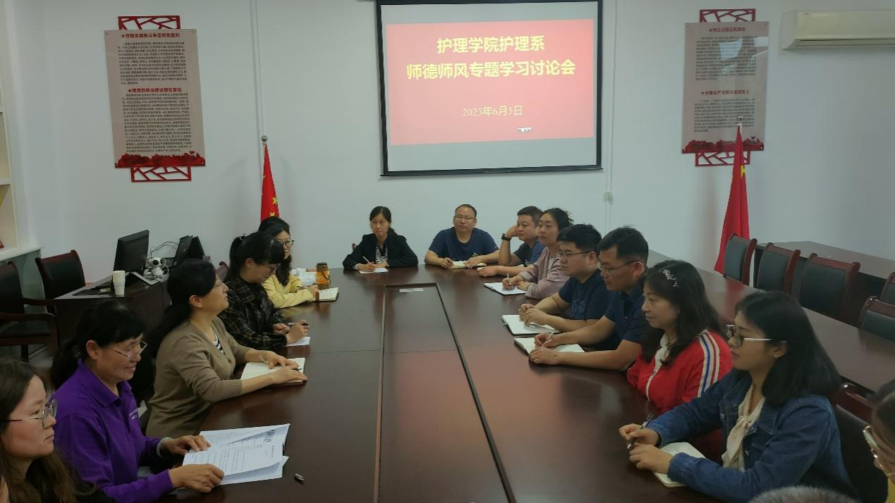 为进一步加强师德师风建设,不断加强教师的行为修养,规范教师从教行为,响应习近平总书记要求广大教师做 “四有”好教师的号召, 6月5日下午护理学院护理系召开全体教师“师德师风”专项学习会议。