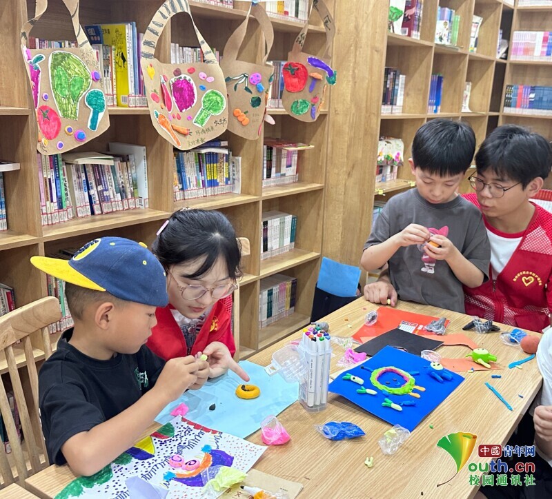 图为实践队员和小朋友一起做课堂小手工。中国青年网通讯员 高杰 供图