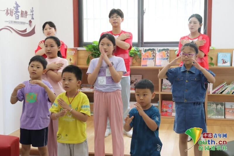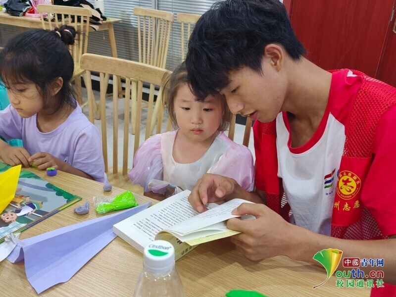 图为实践队员和小朋友一起阅读。中国青年网通讯员 高杰 供图