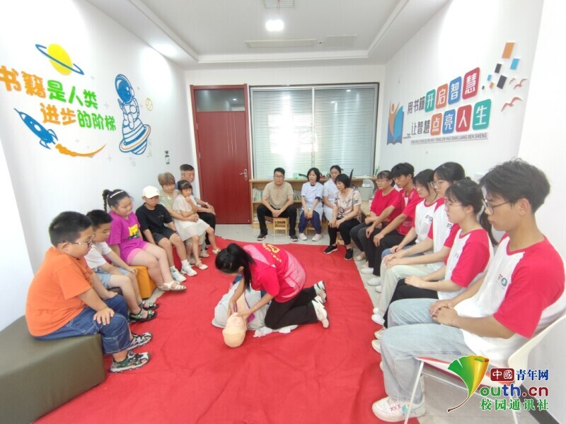 图为实践队员正在进行心肺复苏演示。中国青年网通讯员 高杰 供图